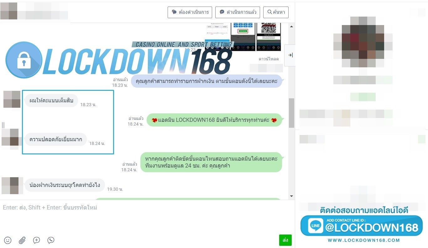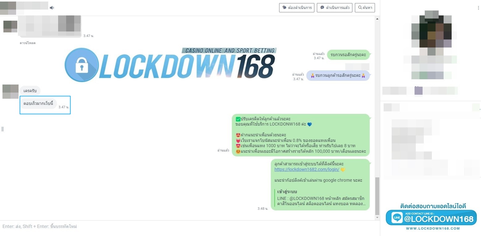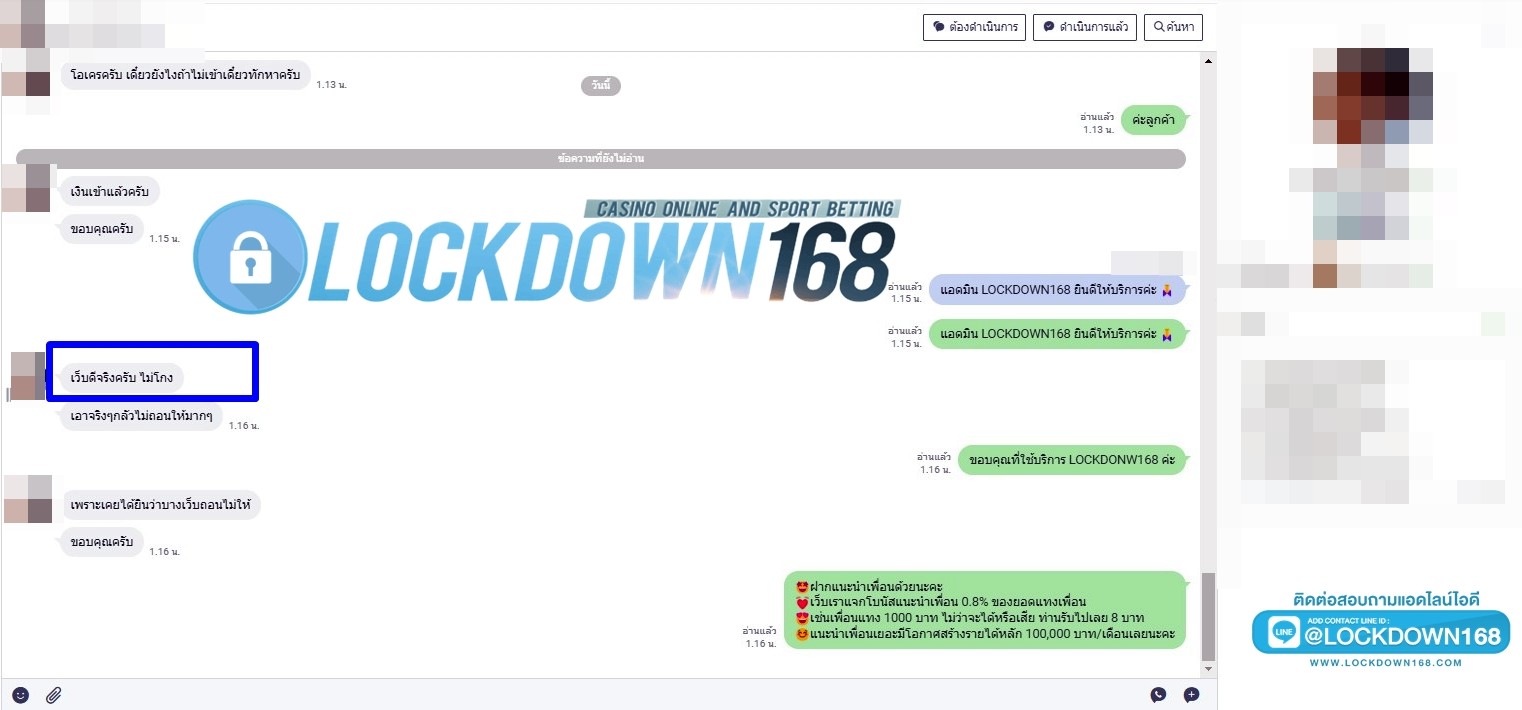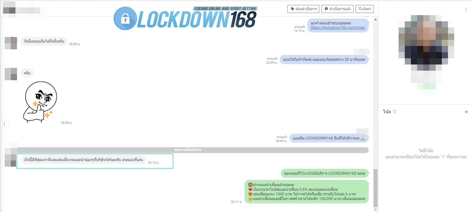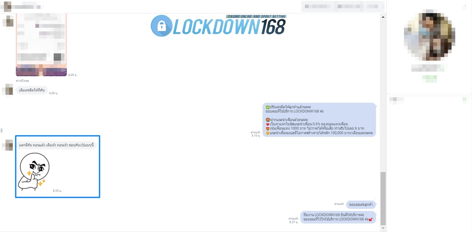 LOCKDOWN168.COM คาสิโนออนไลน์น้องใหม่ที่มาแรงที่สุดในตอนนี้ ด้วยระบบฝาก-ถอนอัตโนมัติ ที่ใช้เทคโนโลยีการจับยอดแบบใหม่ จับยอดฝากได้ภายใน 10 วินาที สามารถเล่นได้ทันทีหลังทำการโอนเงิน และระบบถอนเงินที่สามารถถอนเงินที่หน้าเว็ปได้ด้วยตัวท่านเอง โดยไม่ต้องแจ้งแอดมินและยอดเงินจะเข้าหลังจากทำการถอนภายใน 5 นาที เว็ปของเราคำนึงถึงความสะดวกสบายของลูกค้าเป็นหลัก หากลูกค้าพบปัญหาใดๆก็จะมีเจ้าหน้าที่แอดมินค่อยดูแลอำนวยความสะดวกให้คุณลูกค้าตลอด 24 ชั่วโมง
