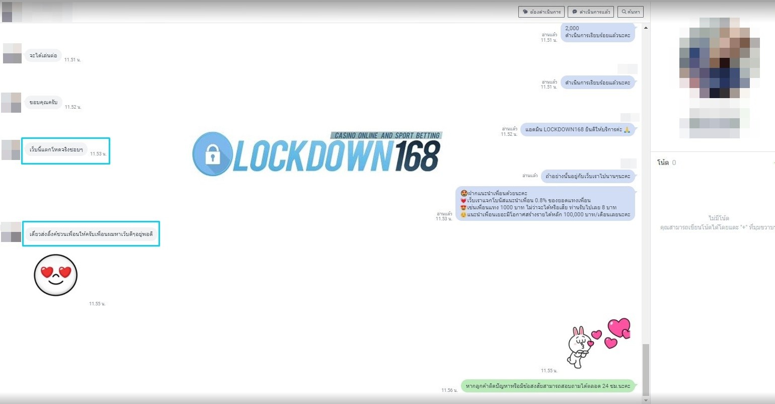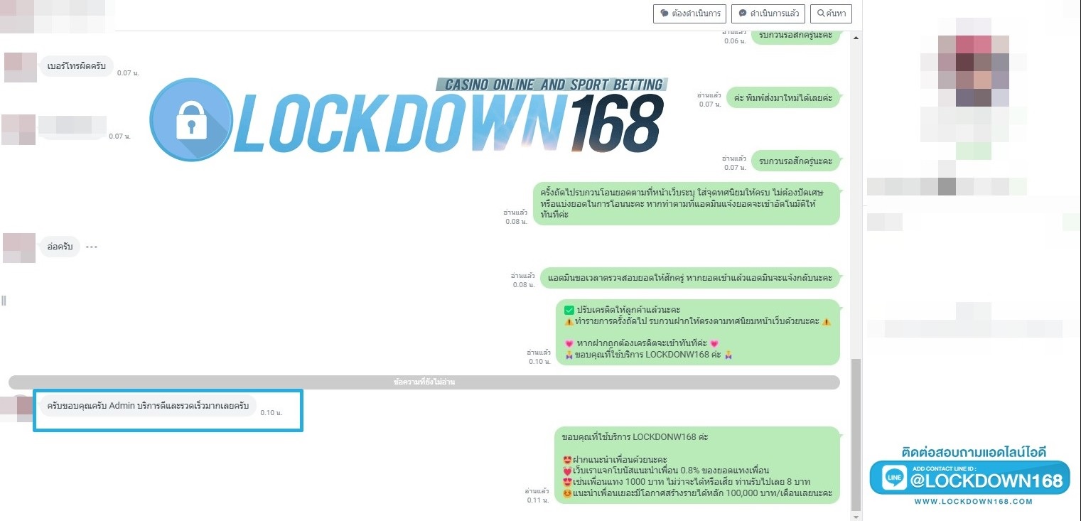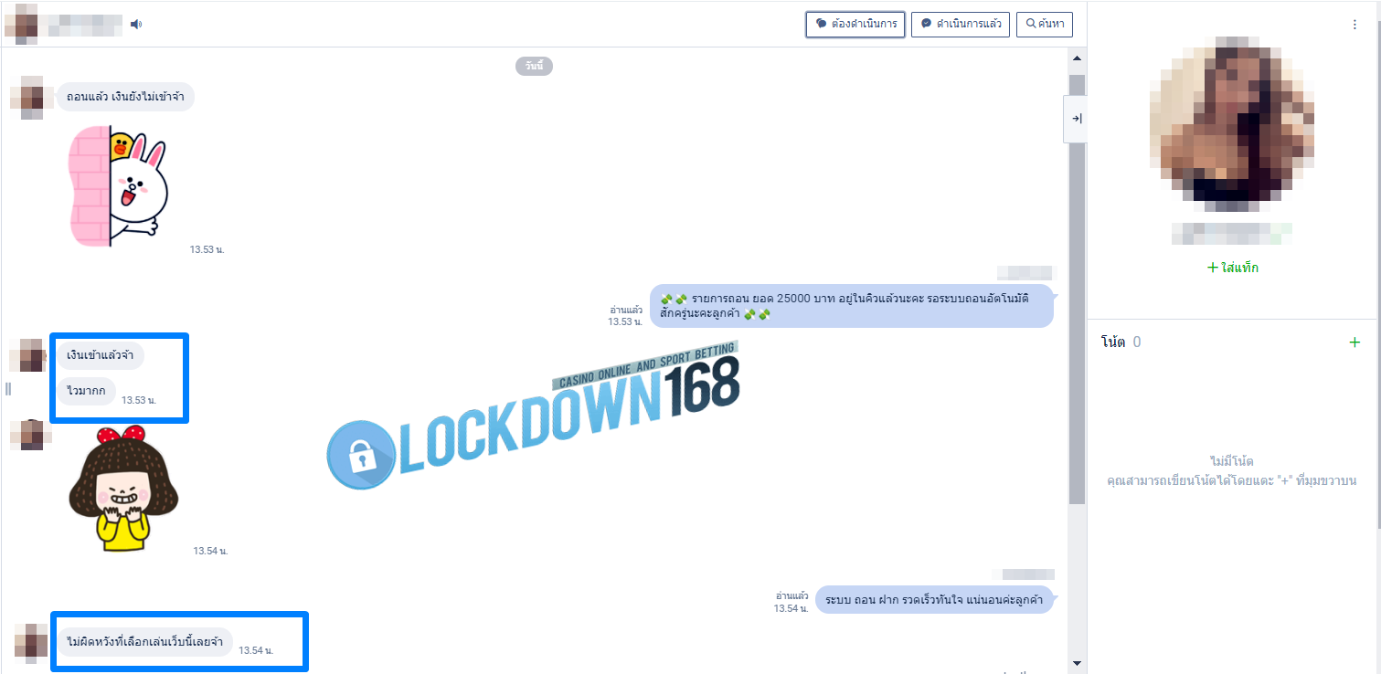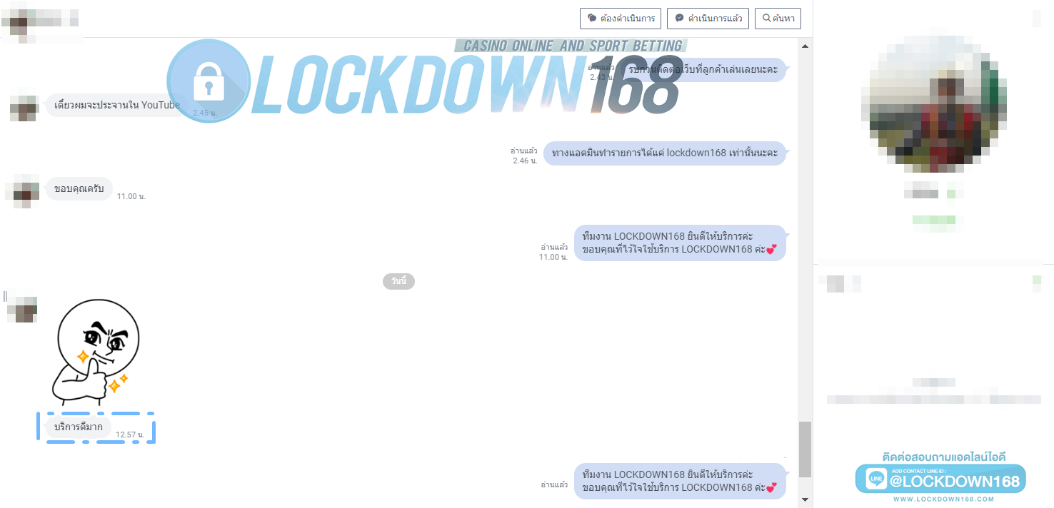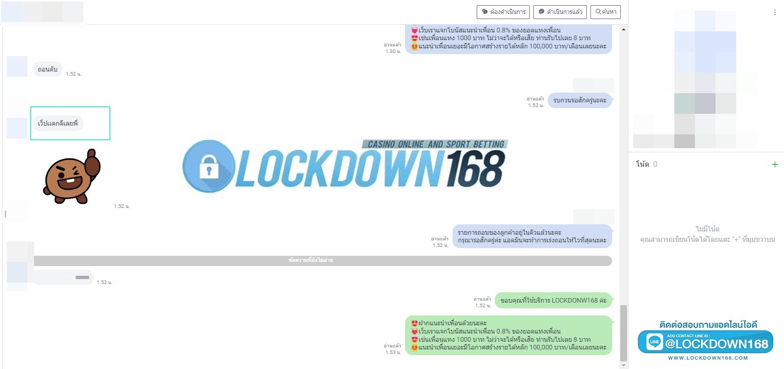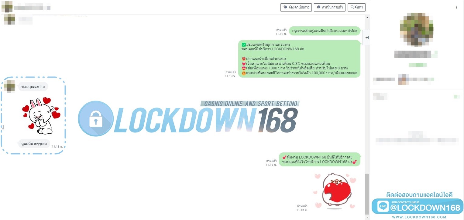 LOCKDOWN168.COM คาสิโนออนไลน์น้องใหม่ที่มาแรงที่สุดในตอนนี้ ด้วยระบบฝาก-ถอนอัตโนมัติ ที่ใช้เทคโนโลยีการจับยอดแบบใหม่ จับยอดฝากได้ภายใน 10 วินาที สามารถเล่นได้ทันทีหลังทำการโอนเงิน และระบบถอนเงินที่สามารถถอนเงินที่หน้าเว็ปได้ด้วยตัวท่านเอง โดยไม่ต้องแจ้งแอดมินและยอดเงินจะเข้าหลังจากทำการถอนภายใน 5 นาที เว็ปของเราคำนึงถึงความสะดวกสบายของลูกค้าเป็นหลัก หากลูกค้าพบปัญหาใดๆก็จะมีเจ้าหน้าที่แอดมินค่อยดูแลอำนวยความสะดวกให้คุณลูกค้าตลอด 24 ชั่วโมง