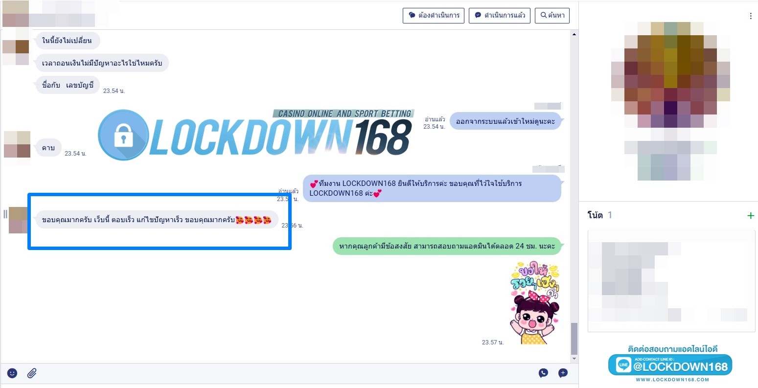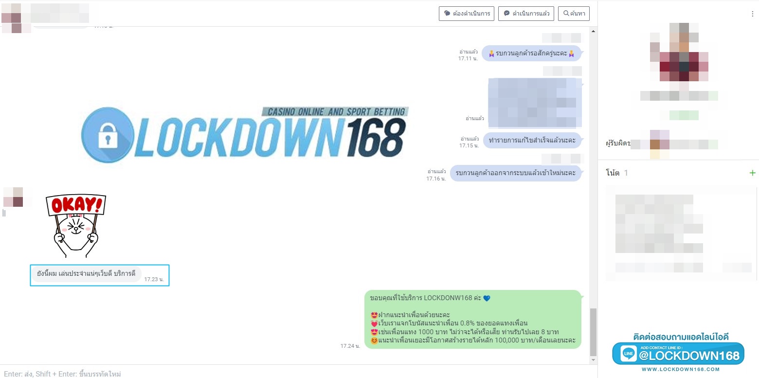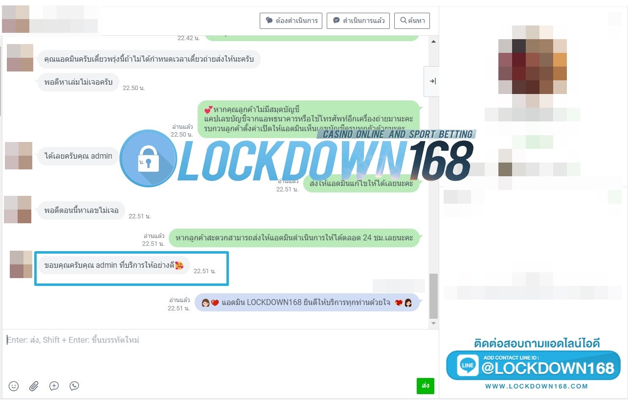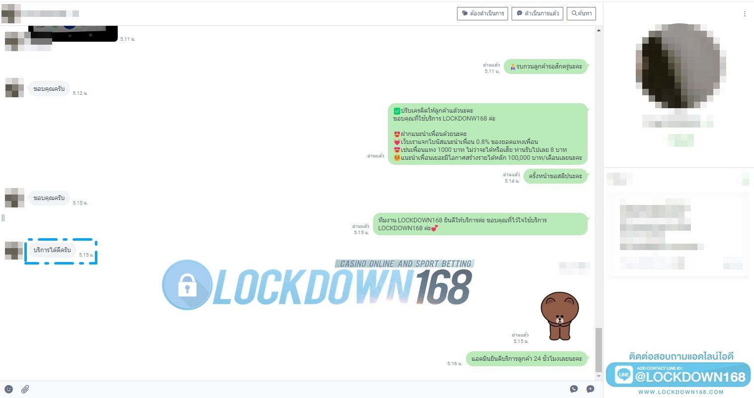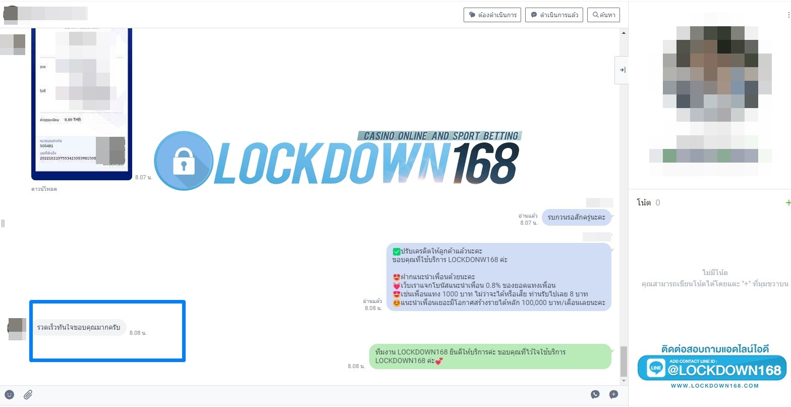 LOCKDOWN168.COM คาสิโนออนไลน์น้องใหม่ที่มาแรงที่สุดในตอนนี้ ด้วยระบบฝาก-ถอนอัตโนมัติ ที่ใช้เทคโนโลยีการจับยอดแบบใหม่ จับยอดฝากได้ภายใน 10 วินาที สามารถเล่นได้ทันทีหลังทำการโอนเงิน และระบบถอนเงินที่สามารถถอนเงินที่หน้าเว็ปได้ด้วยตัวท่านเอง โดยไม่ต้องแจ้งแอดมินและยอดเงินจะเข้าหลังจากทำการถอนภายใน 5 นาที เว็ปของเราคำนึงถึงความสะดวกสบายของลูกค้าเป็นหลัก หากลูกค้าพบปัญหาใดๆก็จะมีเจ้าหน้าที่แอดมินค่อยดูแลอำนวยความสะดวกให้คุณลูกค้าตลอด 24 ชั่วโมง