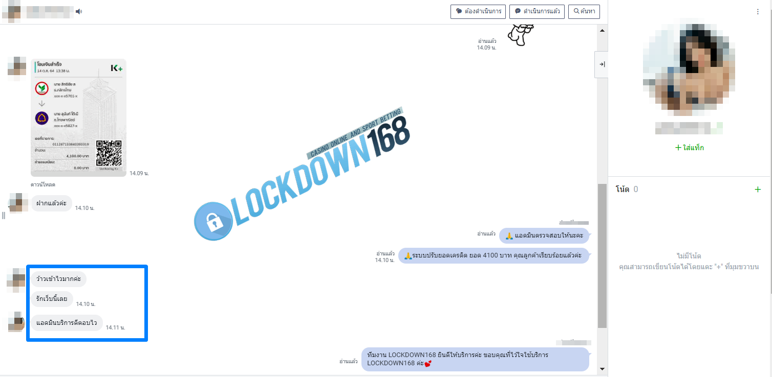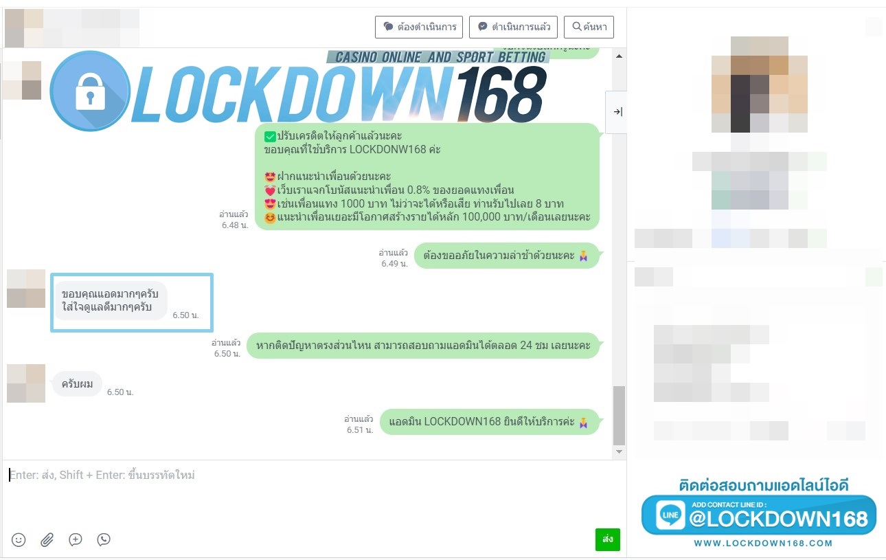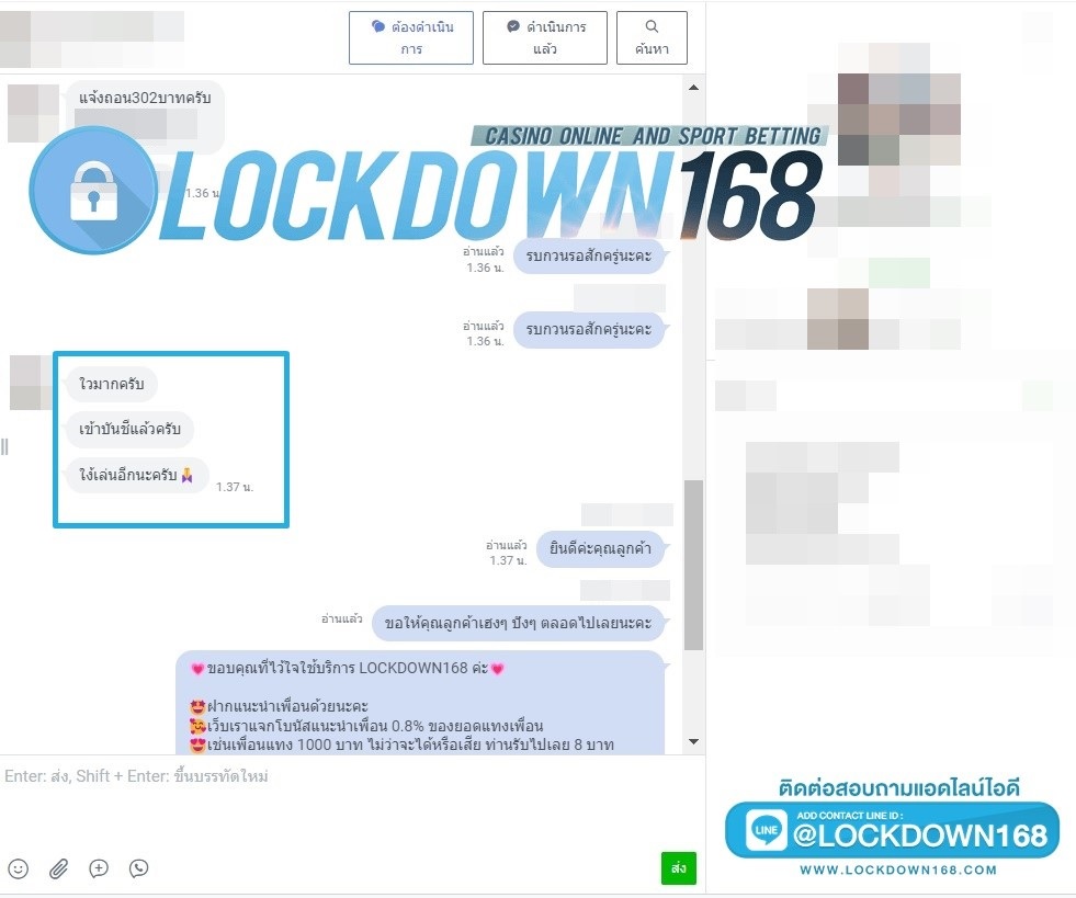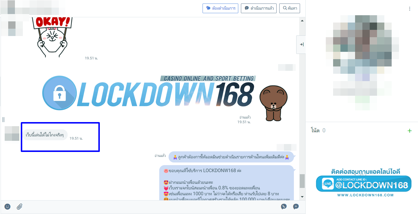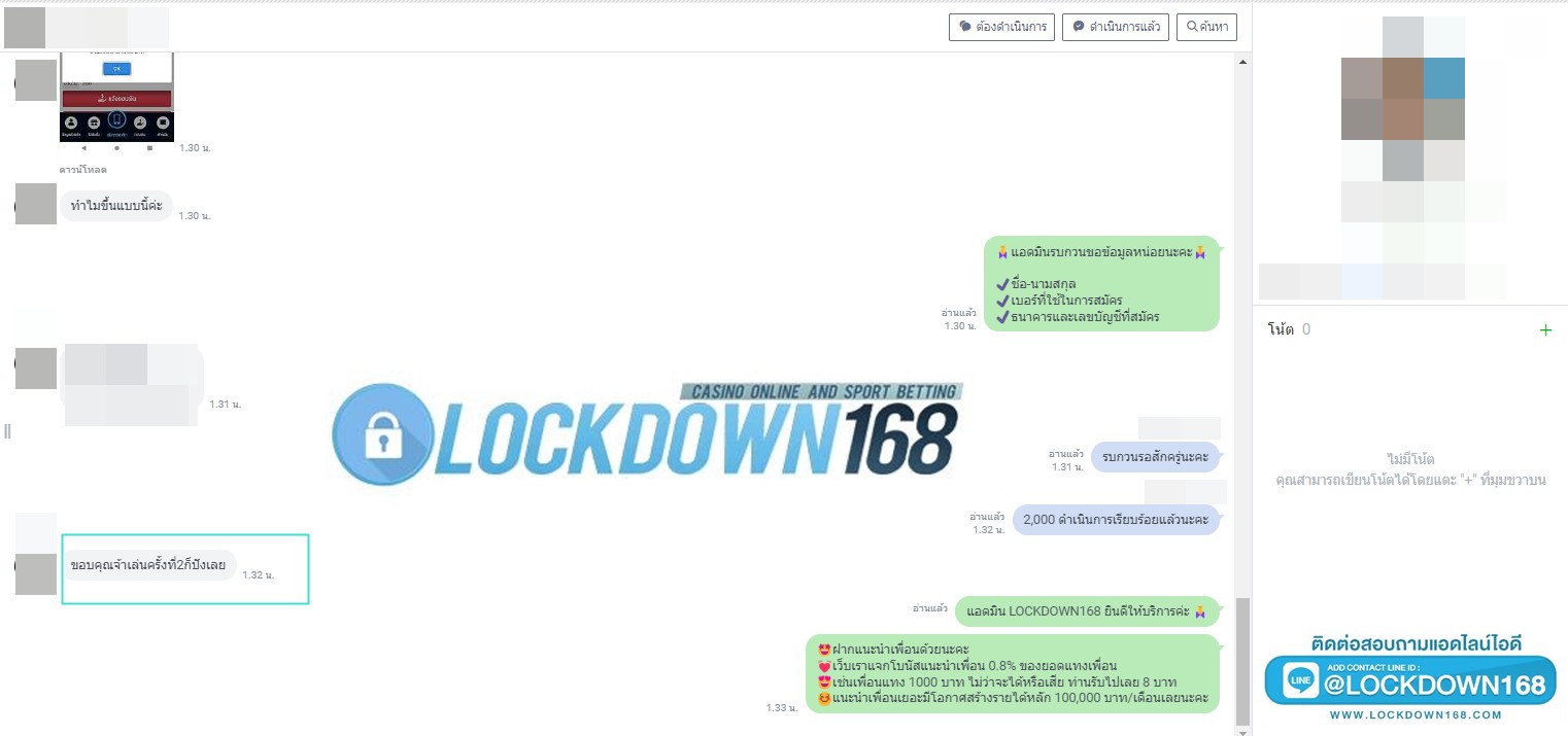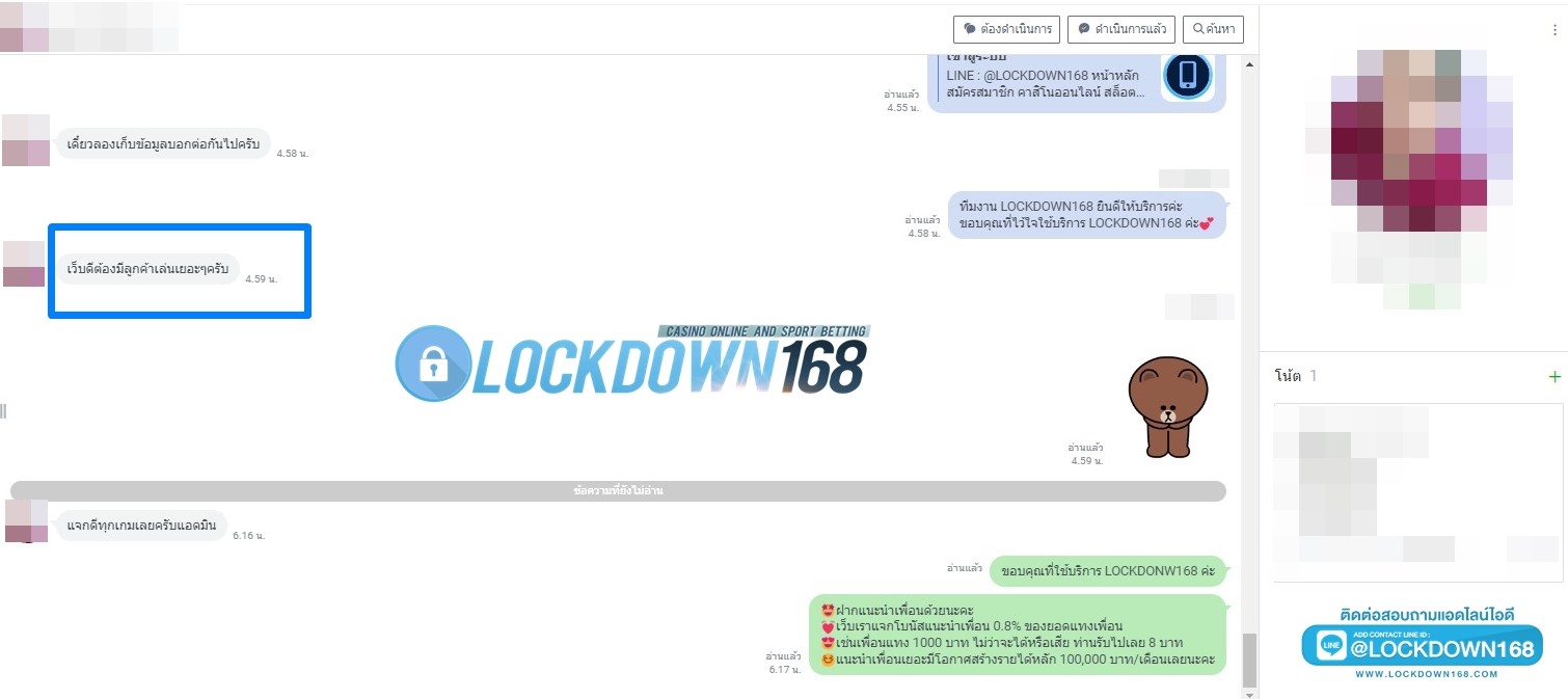LOCKDOWN168.COM คาสิโนออนไลน์น้องใหม่ที่มาแรงที่สุดในตอนนี้ ด้วยระบบฝาก-ถอนอัตโนมัติ ที่ใช้เทคโนโลยีการจับยอดแบบใหม่ จับยอดฝากได้ภายใน 10 วินาที สามารถเล่นได้ทันทีหลังทำการโอนเงิน และระบบถอนเงินที่สามารถถอนเงินที่หน้าเว็ปได้ด้วยตัวท่านเอง โดยไม่ต้องแจ้งแอดมินและยอดเงินจะเข้าหลังจากทำการถอนภายใน 5 นาที เว็ปของเราคำนึงถึงความสะดวกสบายของลูกค้าเป็นหลัก หากลูกค้าพบปัญหาใดๆก็จะมีเจ้าหน้าที่แอดมินค่อยดูแลอำนวยความสะดวกให้คุณลูกค้าตลอด 24 ชั่วโมง