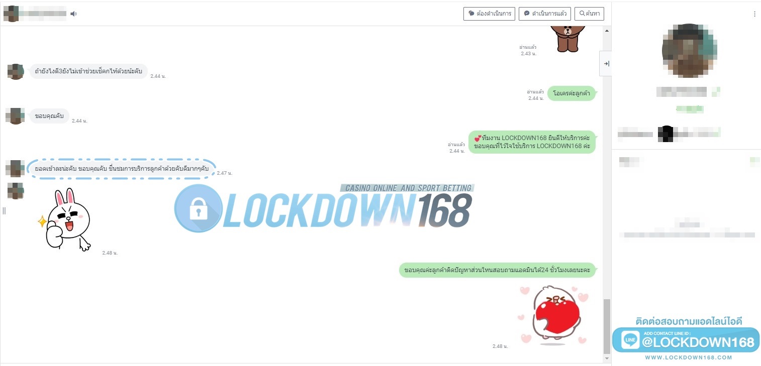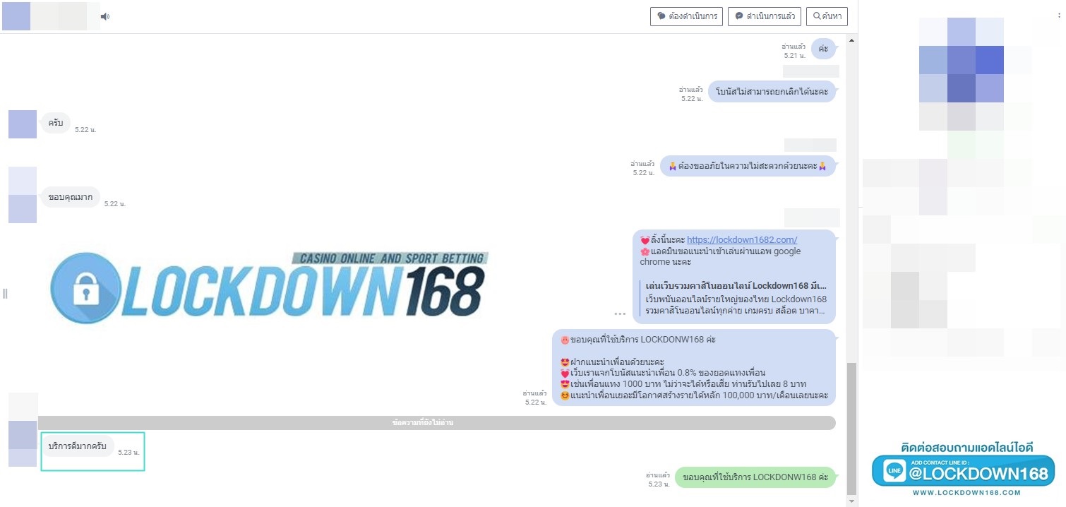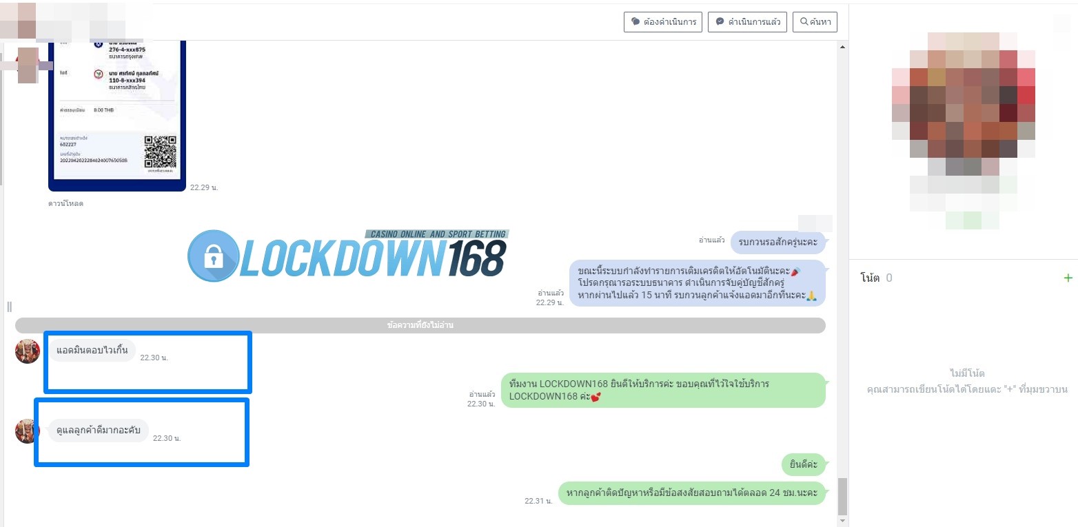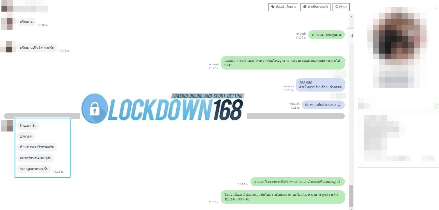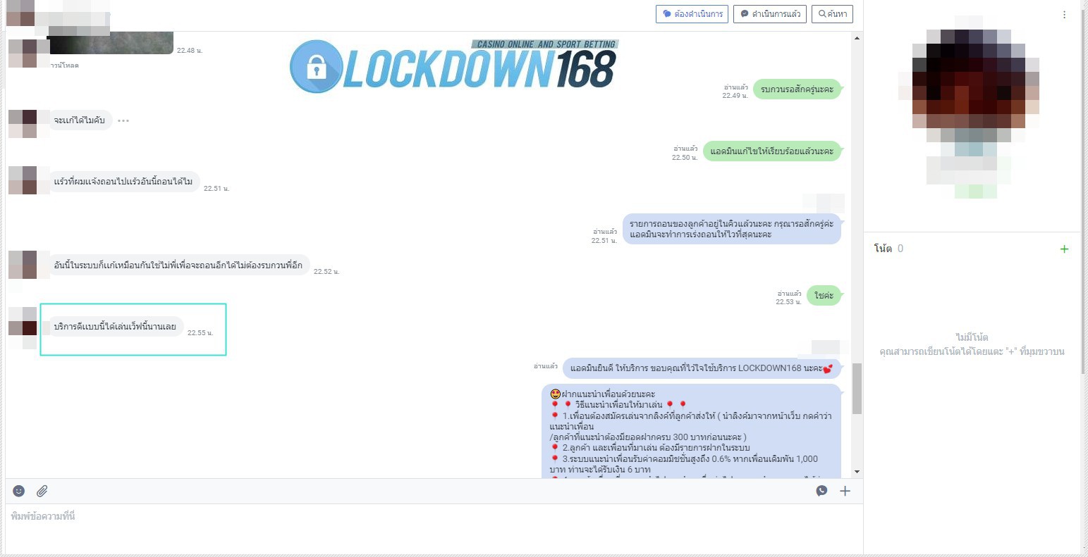 LOCKDOWN168.COM คาสิโนออนไลน์น้องใหม่ที่มาแรงที่สุดในตอนนี้ ด้วยระบบฝาก-ถอนอัตโนมัติ ที่ใช้เทคโนโลยีการจับยอดแบบใหม่ จับยอดฝากได้ภายใน 10 วินาที สามารถเล่นได้ทันทีหลังทำการโอนเงิน และระบบถอนเงินที่สามารถถอนเงินที่หน้าเว็ปได้ด้วยตัวท่านเอง โดยไม่ต้องแจ้งแอดมินและยอดเงินจะเข้าหลังจากทำการถอนภายใน 5 นาที เว็ปของเราคำนึงถึงความสะดวกสบายของลูกค้าเป็นหลัก หากลูกค้าพบปัญหาใดๆก็จะมีเจ้าหน้าที่แอดมินค่อยดูแลอำนวยความสะดวกให้คุณลูกค้าตลอด 24 ชั่วโมง
