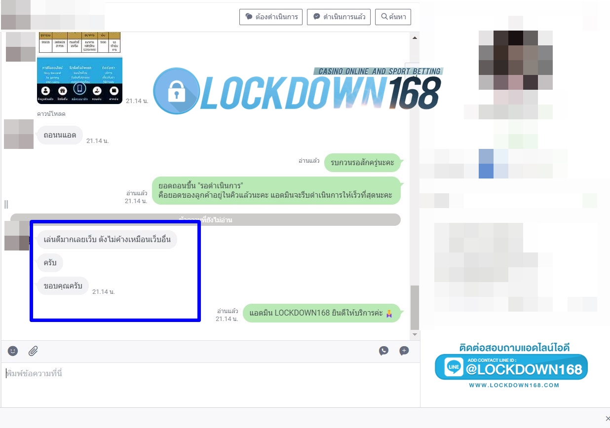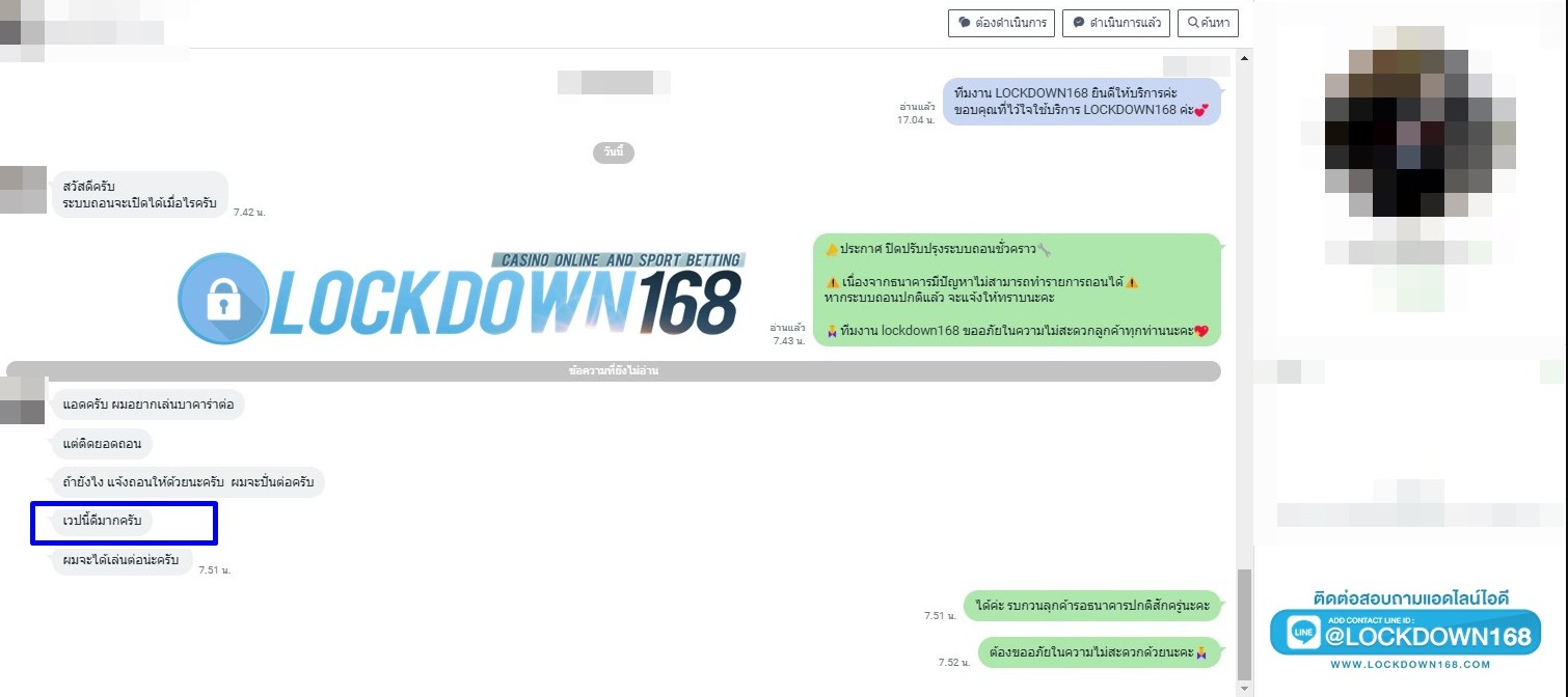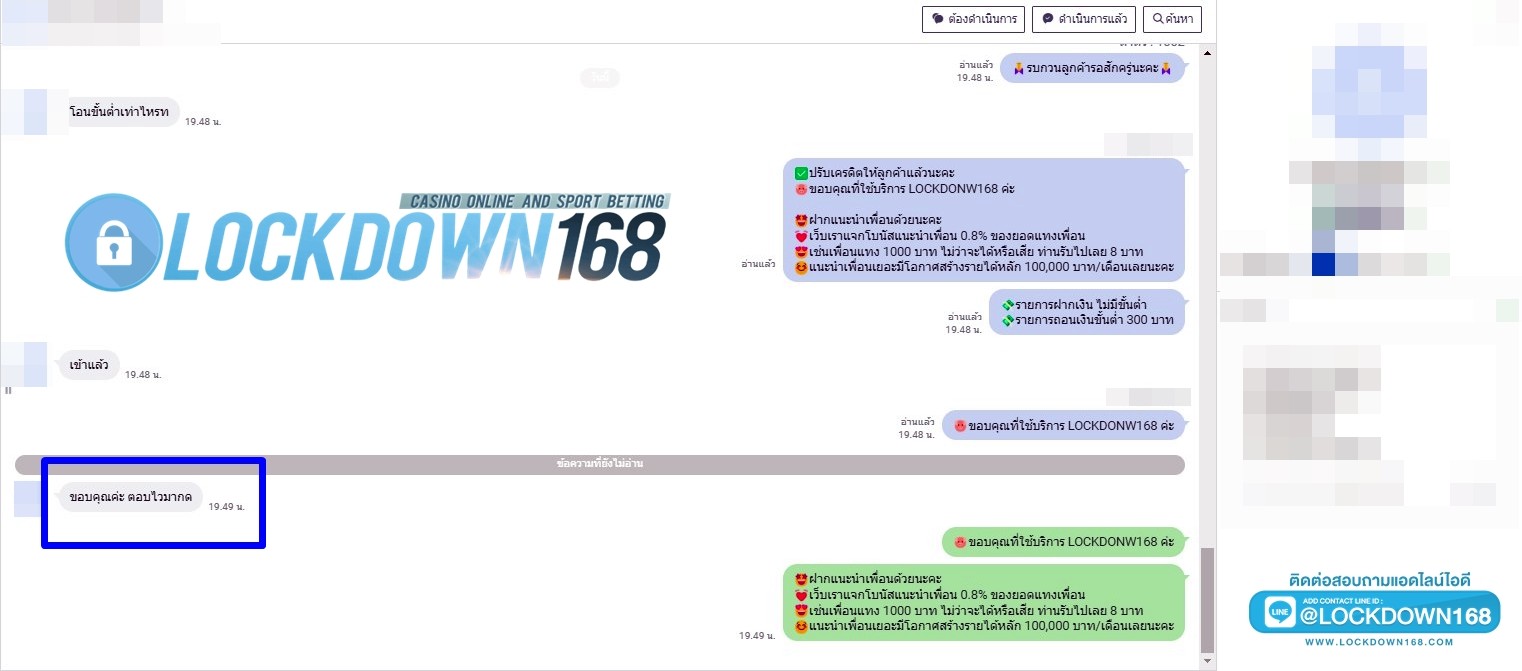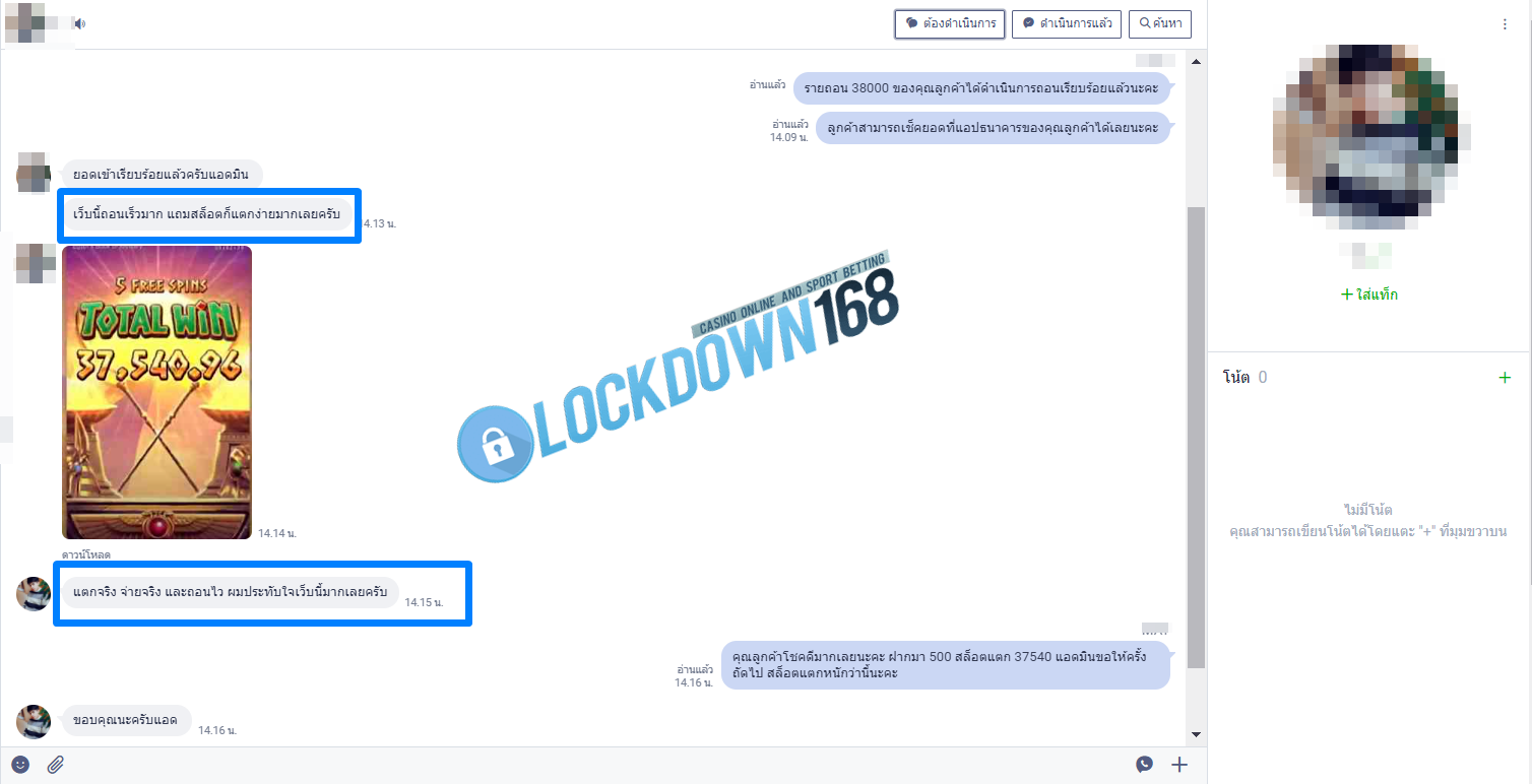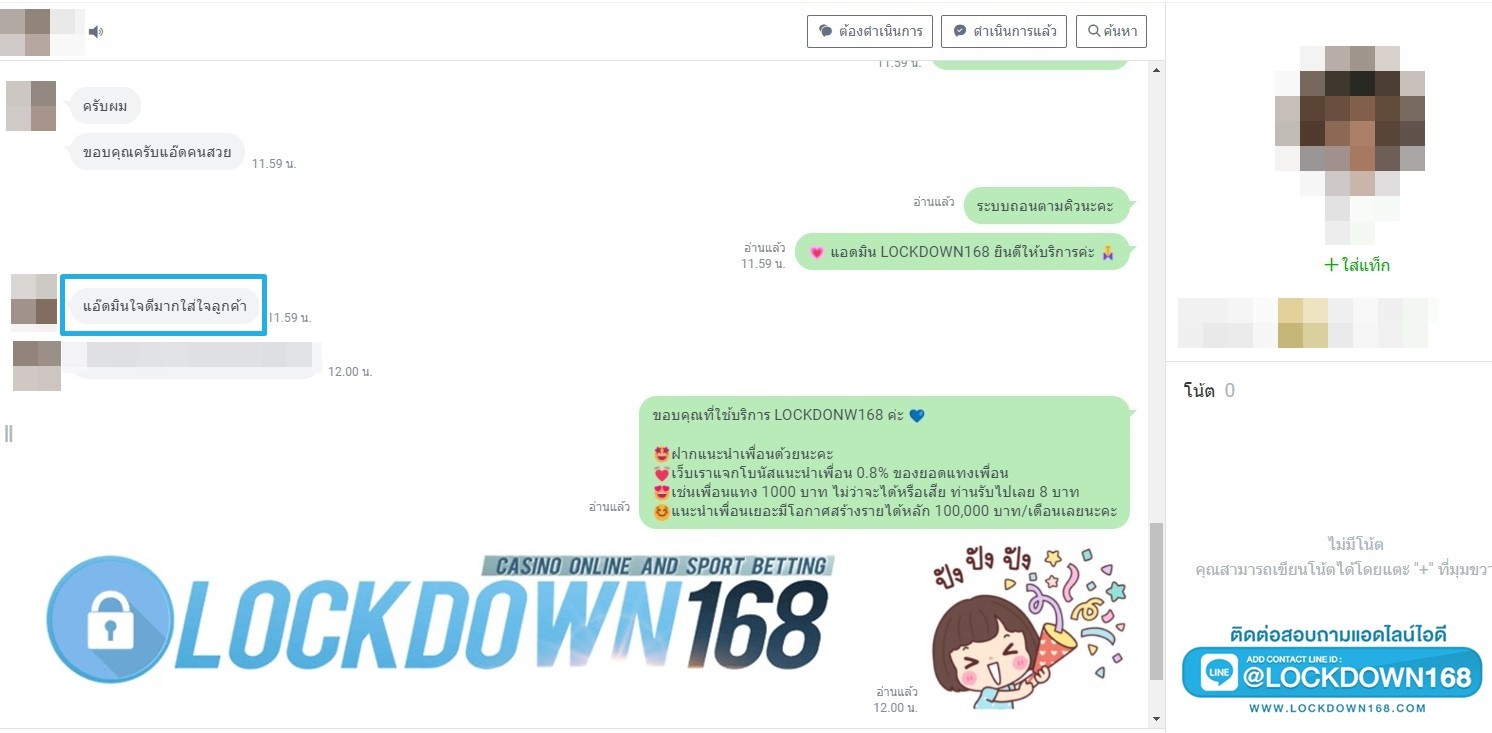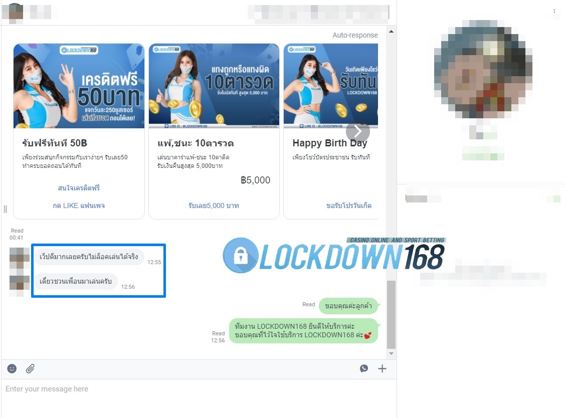LOCKDOWN168.COM คาสิโนออนไลน์น้องใหม่ที่มาแรงที่สุดในตอนนี้ ด้วยระบบฝาก-ถอนอัตโนมัติ ที่ใช้เทคโนโลยีการจับยอดแบบใหม่ จับยอดฝากได้ภายใน 10 วินาที สามารถเล่นได้ทันทีหลังทำการโอนเงิน และระบบถอนเงินที่สามารถถอนเงินที่หน้าเว็ปได้ด้วยตัวท่านเอง โดยไม่ต้องแจ้งแอดมินและยอดเงินจะเข้าหลังจากทำการถอนภายใน 5 นาที เว็ปของเราคำนึงถึงความสะดวกสบายของลูกค้าเป็นหลัก หากลูกค้าพบปัญหาใดๆก็จะมีเจ้าหน้าที่แอดมินค่อยดูแลอำนวยความสะดวกให้คุณลูกค้าตลอด 24 ชั่วโมง