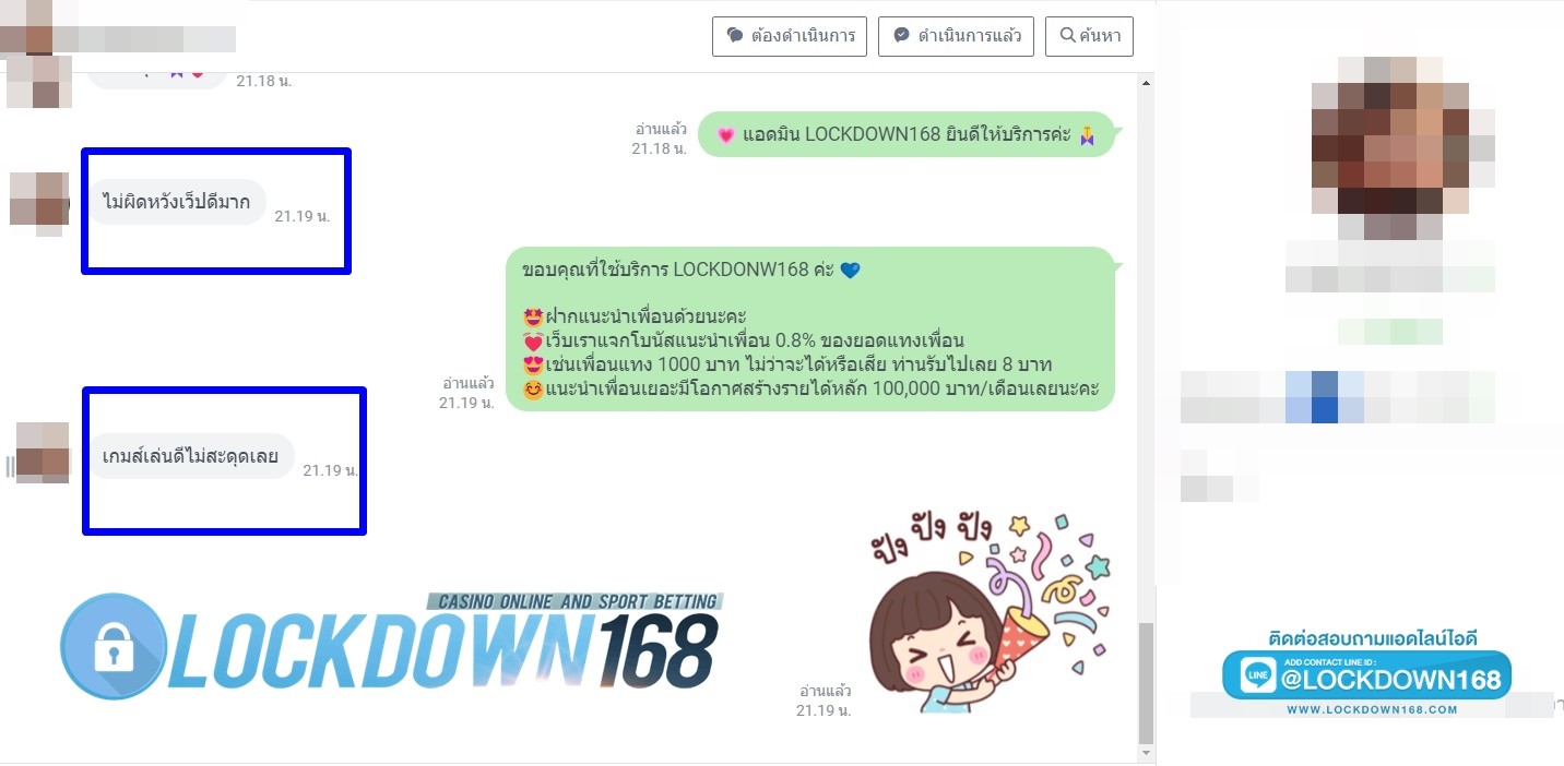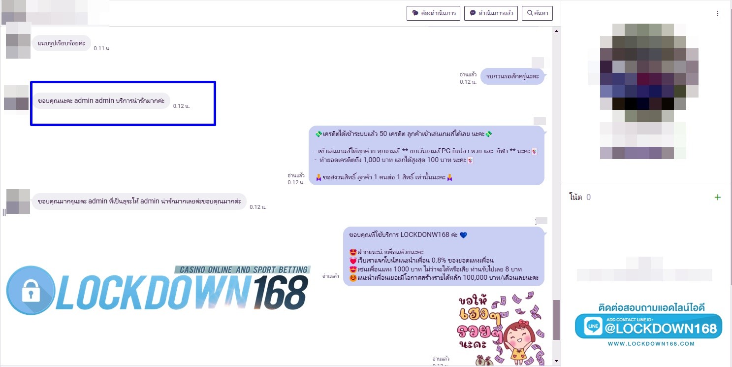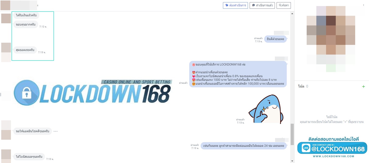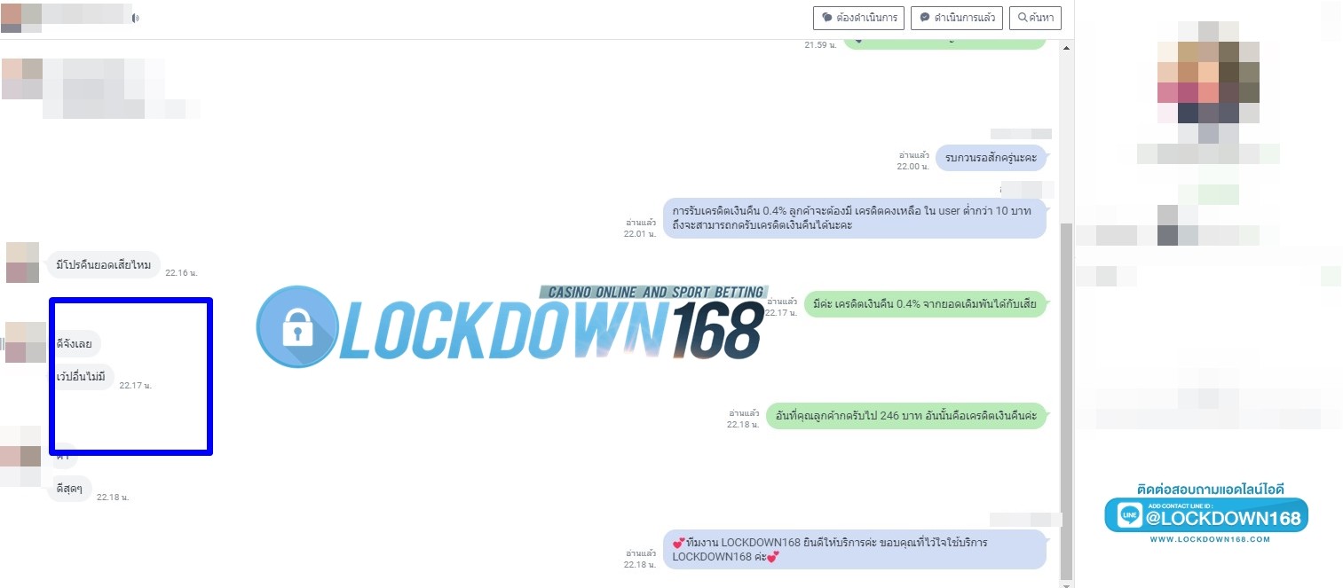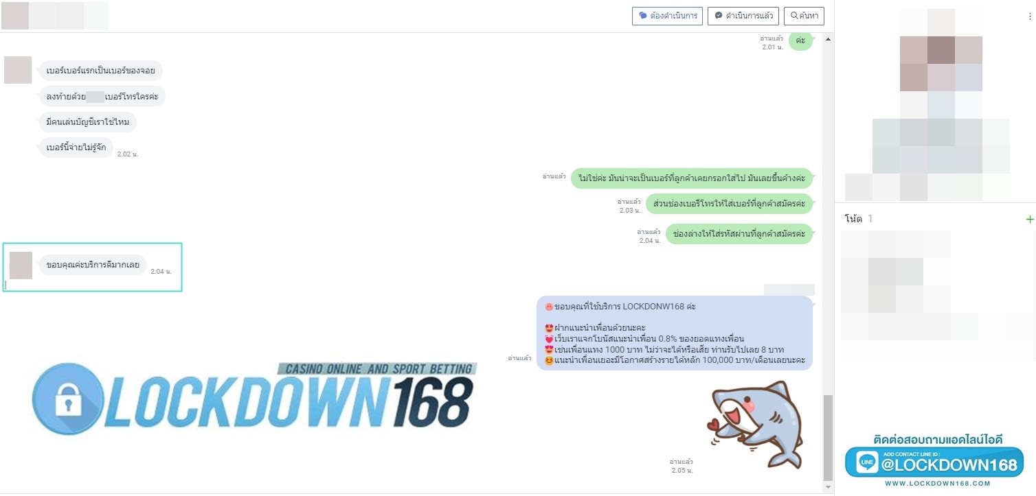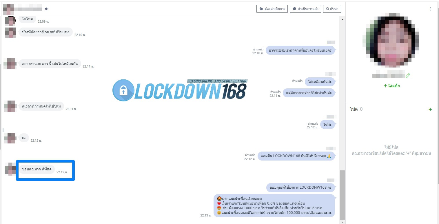 LOCKDOWN168.COM คาสิโนออนไลน์น้องใหม่ที่มาแรงที่สุดในตอนนี้ ด้วยระบบฝาก-ถอนอัตโนมัติ ที่ใช้เทคโนโลยีการจับยอดแบบใหม่ จับยอดฝากได้ภายใน 10 วินาที สามารถเล่นได้ทันทีหลังทำการโอนเงิน และระบบถอนเงินที่สามารถถอนเงินที่หน้าเว็ปได้ด้วยตัวท่านเอง โดยไม่ต้องแจ้งแอดมินและยอดเงินจะเข้าหลังจากทำการถอนภายใน 5 นาที เว็ปของเราคำนึงถึงความสะดวกสบายของลูกค้าเป็นหลัก หากลูกค้าพบปัญหาใดๆก็จะมีเจ้าหน้าที่แอดมินค่อยดูแลอำนวยความสะดวกให้คุณลูกค้าตลอด 24 ชั่วโมง