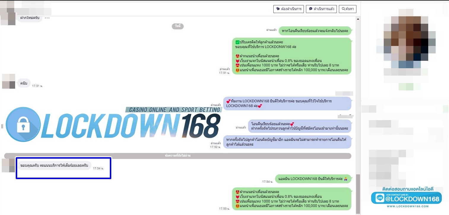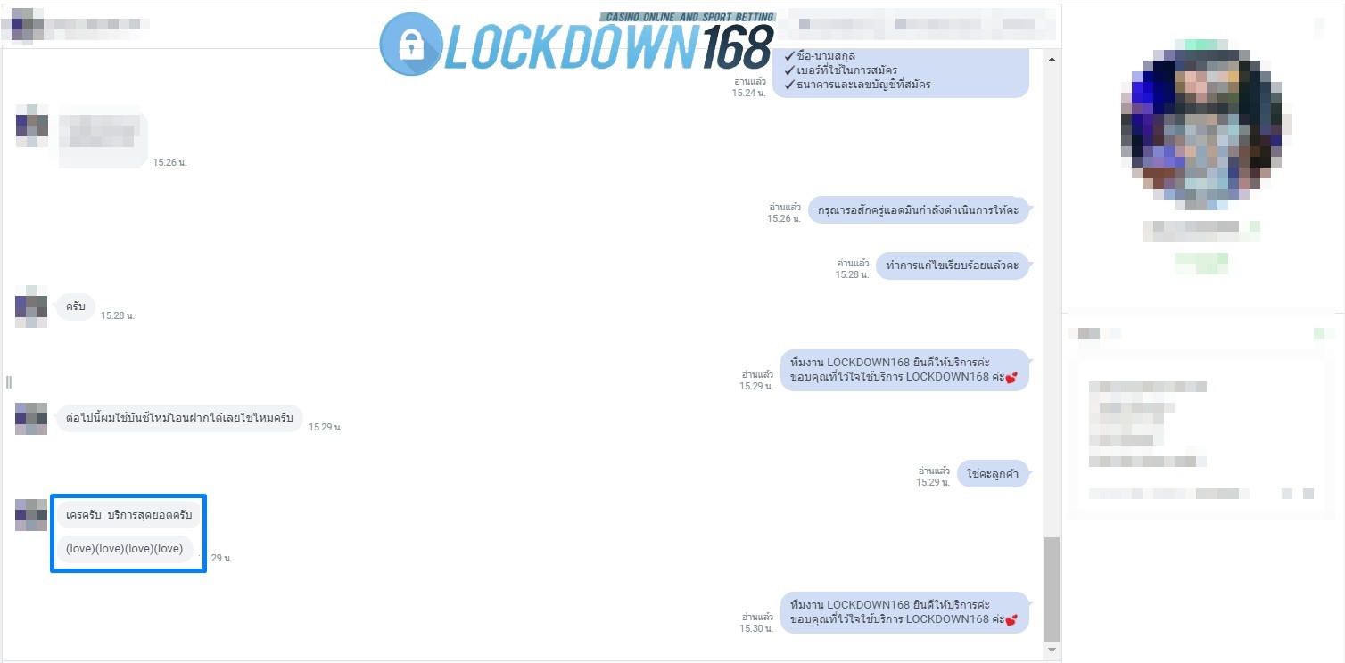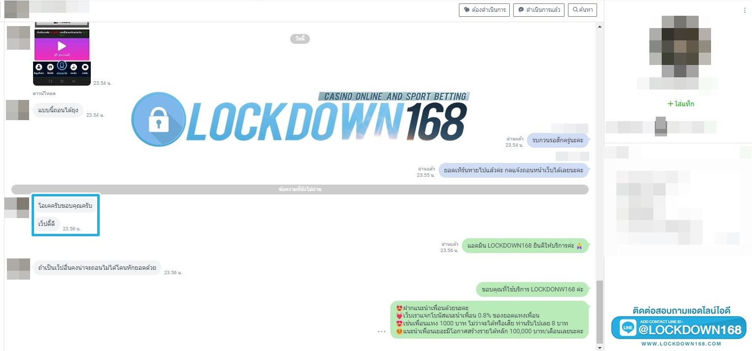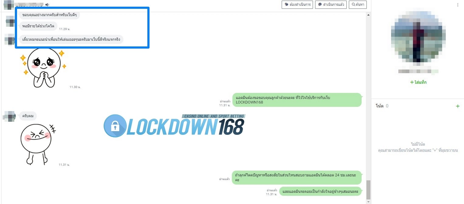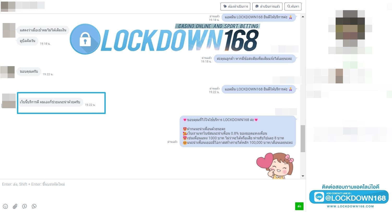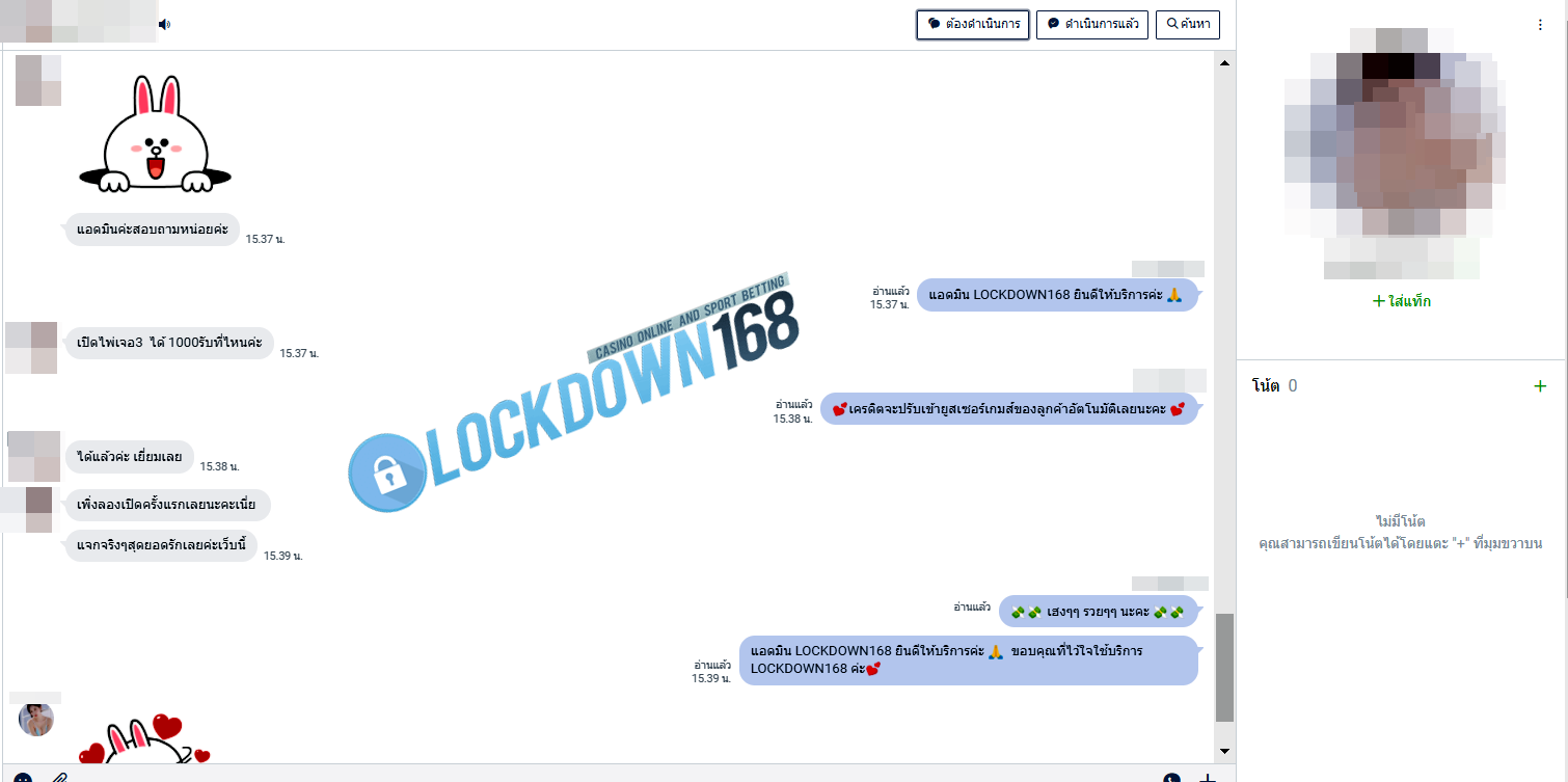 LOCKDOWN168.COM คาสิโนออนไลน์น้องใหม่ที่มาแรงที่สุดในตอนนี้ ด้วยระบบฝาก-ถอนอัตโนมัติ ที่ใช้เทคโนโลยีการจับยอดแบบใหม่ จับยอดฝากได้ภายใน 10 วินาที สามารถเล่นได้ทันทีหลังทำการโอนเงิน และระบบถอนเงินที่สามารถถอนเงินที่หน้าเว็ปได้ด้วยตัวท่านเอง โดยไม่ต้องแจ้งแอดมินและยอดเงินจะเข้าหลังจากทำการถอนภายใน 5 นาที เว็ปของเราคำนึงถึงความสะดวกสบายของลูกค้าเป็นหลัก หากลูกค้าพบปัญหาใดๆก็จะมีเจ้าหน้าที่แอดมินค่อยดูแลอำนวยความสะดวกให้คุณลูกค้าตลอด 24 ชั่วโมง