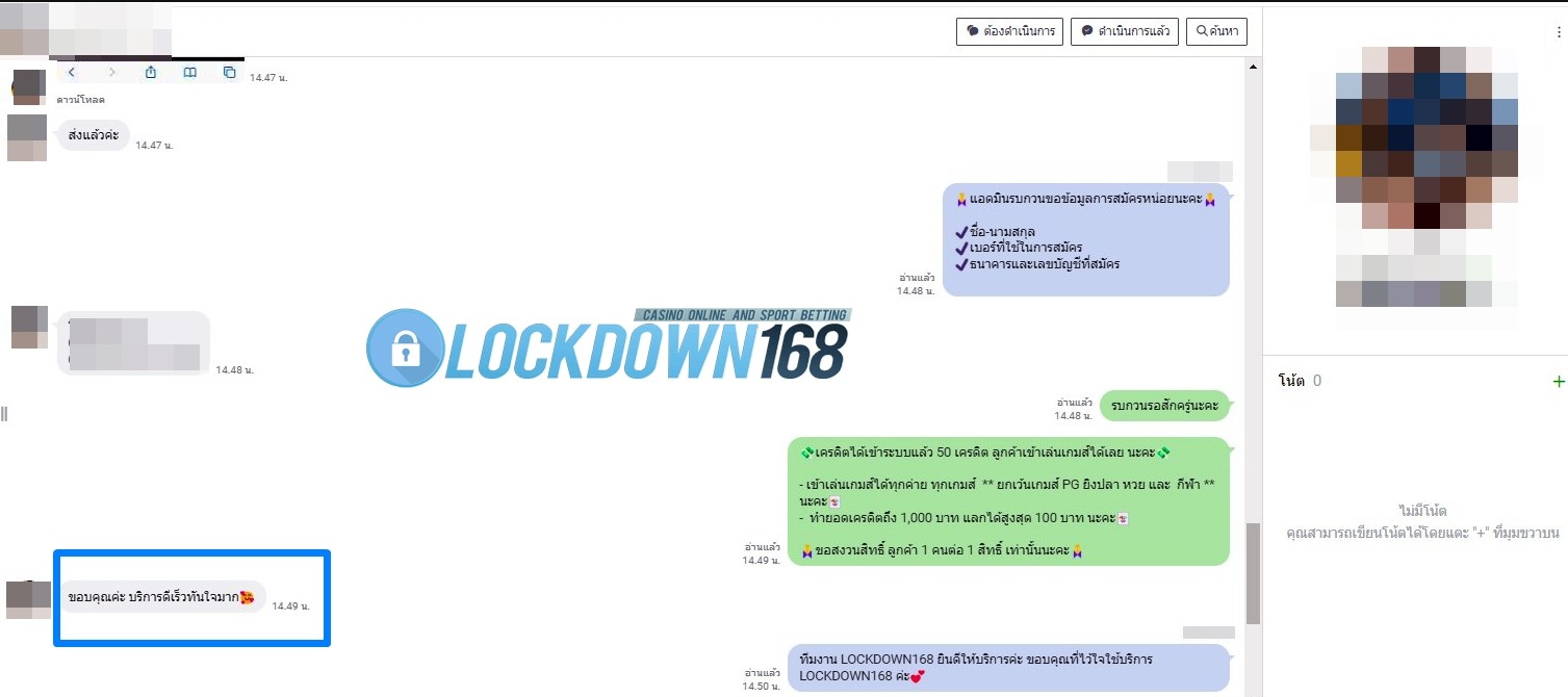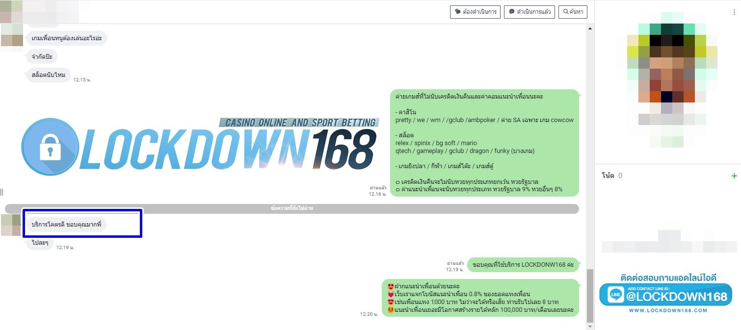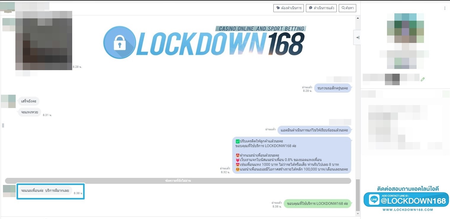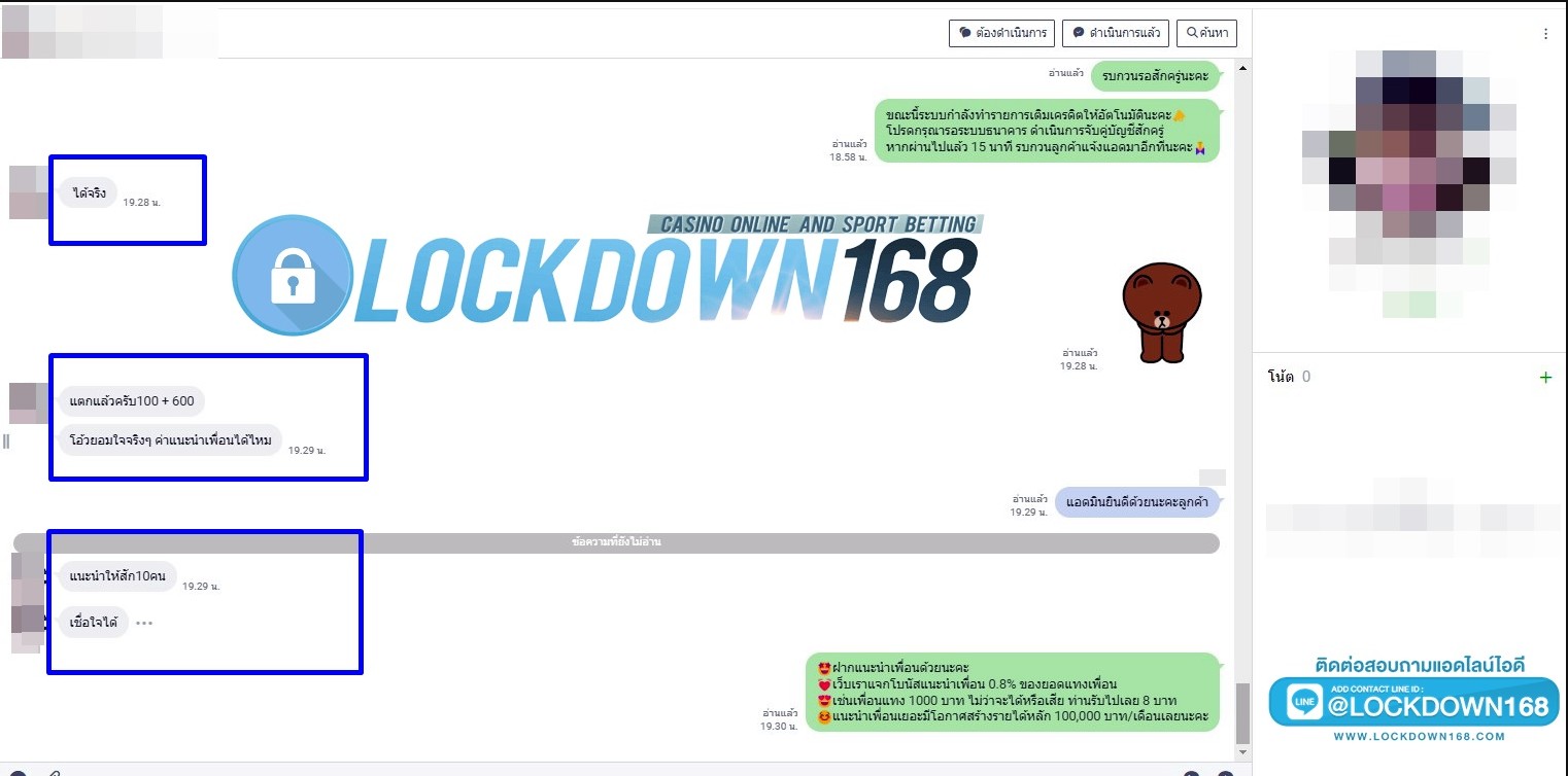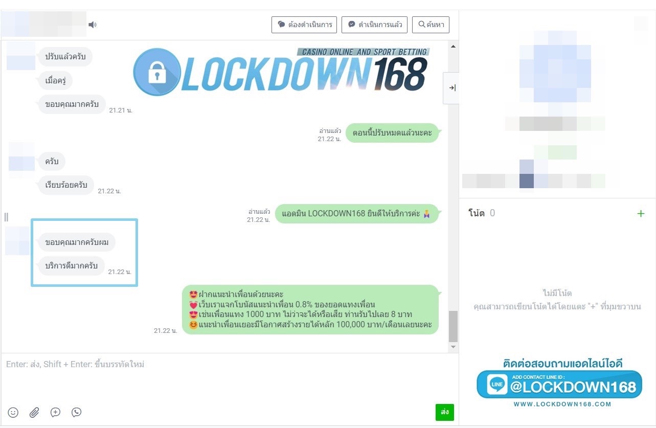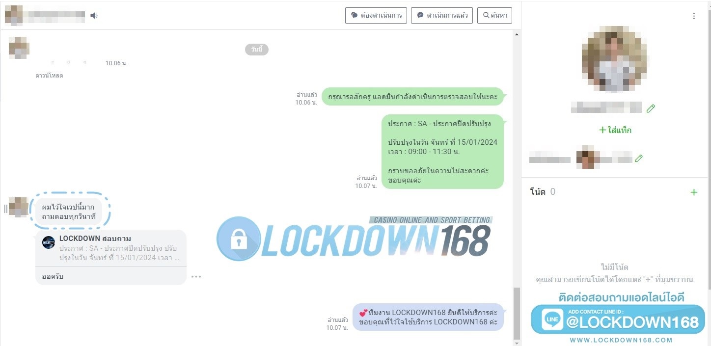 LOCKDOWN168.COM คาสิโนออนไลน์น้องใหม่ที่มาแรงที่สุดในตอนนี้ ด้วยระบบฝาก-ถอนอัตโนมัติ ที่ใช้เทคโนโลยีการจับยอดแบบใหม่ จับยอดฝากได้ภายใน 10 วินาที สามารถเล่นได้ทันทีหลังทำการโอนเงิน และระบบถอนเงินที่สามารถถอนเงินที่หน้าเว็ปได้ด้วยตัวท่านเอง โดยไม่ต้องแจ้งแอดมินและยอดเงินจะเข้าหลังจากทำการถอนภายใน 5 นาที เว็ปของเราคำนึงถึงความสะดวกสบายของลูกค้าเป็นหลัก หากลูกค้าพบปัญหาใดๆก็จะมีเจ้าหน้าที่แอดมินค่อยดูแลอำนวยความสะดวกให้คุณลูกค้าตลอด 24 ชั่วโมง