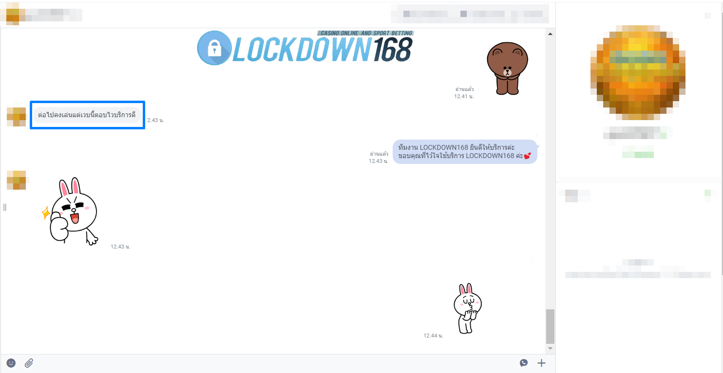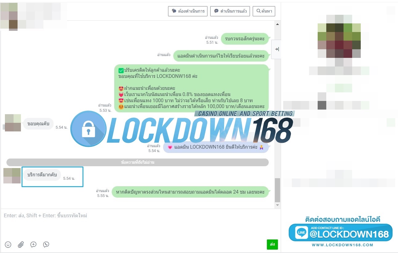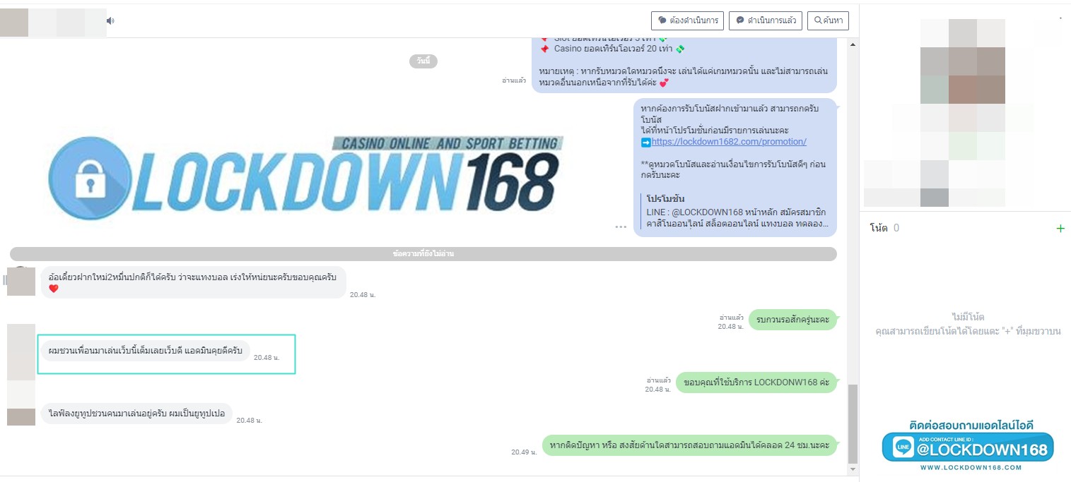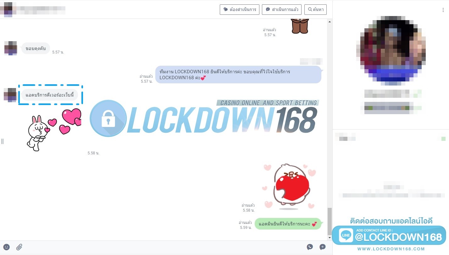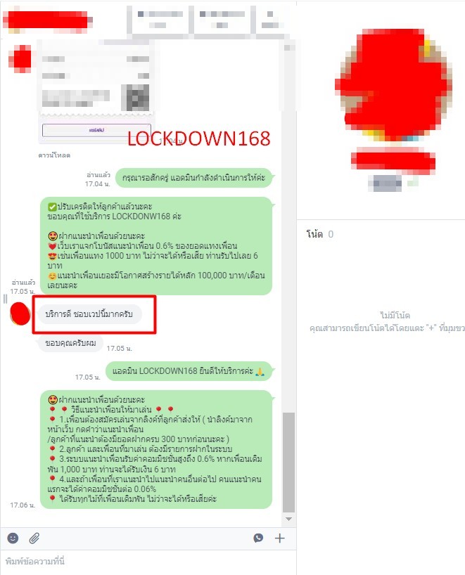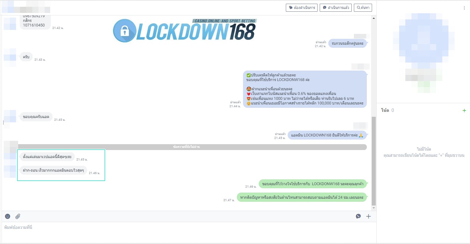 LOCKDOWN168.COM คาสิโนออนไลน์น้องใหม่ที่มาแรงที่สุดในตอนนี้ ด้วยระบบฝาก-ถอนอัตโนมัติ ที่ใช้เทคโนโลยีการจับยอดแบบใหม่ จับยอดฝากได้ภายใน 10 วินาที สามารถเล่นได้ทันทีหลังทำการโอนเงิน และระบบถอนเงินที่สามารถถอนเงินที่หน้าเว็ปได้ด้วยตัวท่านเอง โดยไม่ต้องแจ้งแอดมินและยอดเงินจะเข้าหลังจากทำการถอนภายใน 5 นาที เว็ปของเราคำนึงถึงความสะดวกสบายของลูกค้าเป็นหลัก หากลูกค้าพบปัญหาใดๆก็จะมีเจ้าหน้าที่แอดมินค่อยดูแลอำนวยความสะดวกให้คุณลูกค้าตลอด 24 ชั่วโมง