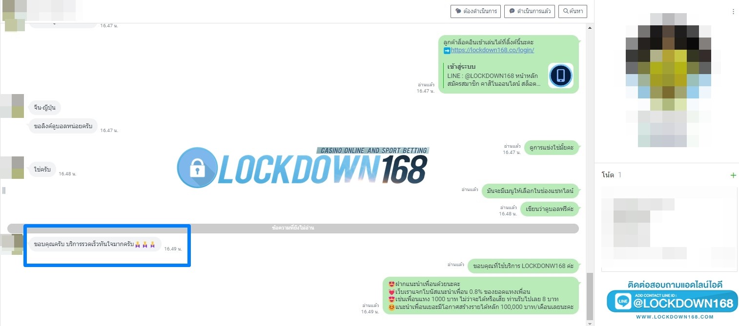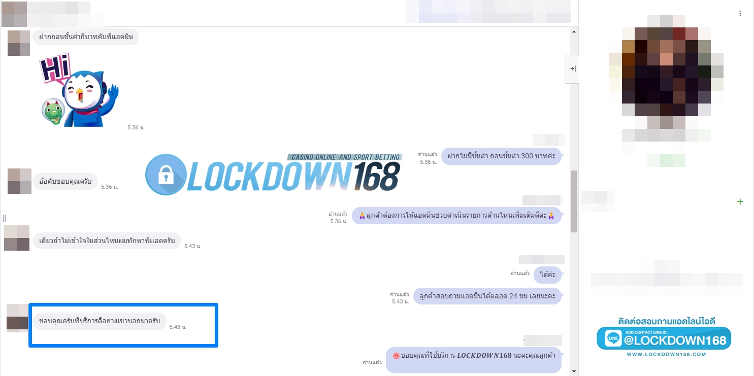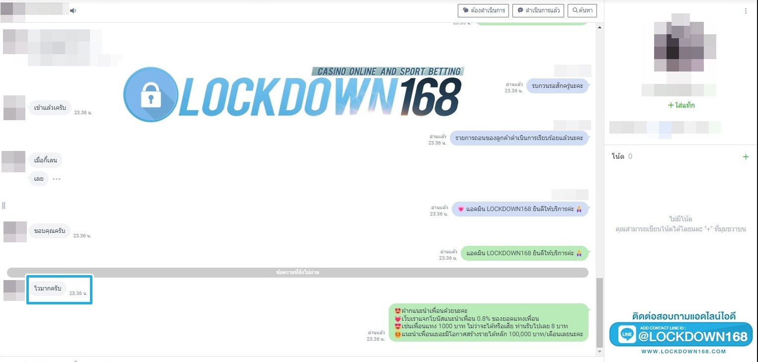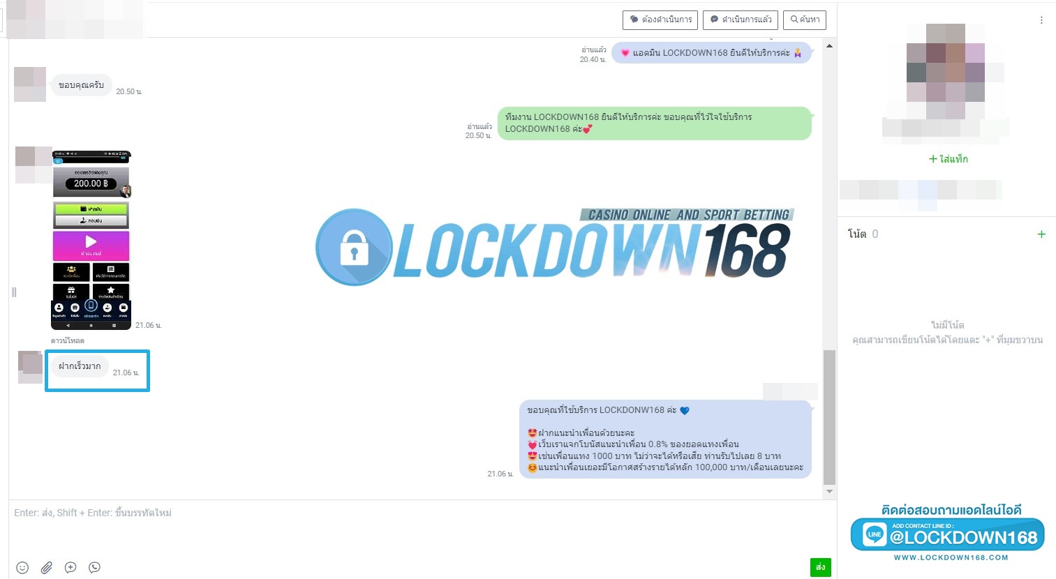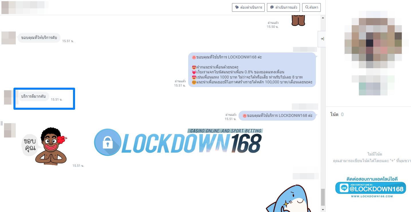 LOCKDOWN168.COM คาสิโนออนไลน์น้องใหม่ที่มาแรงที่สุดในตอนนี้ ด้วยระบบฝาก-ถอนอัตโนมัติ ที่ใช้เทคโนโลยีการจับยอดแบบใหม่ จับยอดฝากได้ภายใน 10 วินาที สามารถเล่นได้ทันทีหลังทำการโอนเงิน และระบบถอนเงินที่สามารถถอนเงินที่หน้าเว็ปได้ด้วยตัวท่านเอง โดยไม่ต้องแจ้งแอดมินและยอดเงินจะเข้าหลังจากทำการถอนภายใน 5 นาที เว็ปของเราคำนึงถึงความสะดวกสบายของลูกค้าเป็นหลัก หากลูกค้าพบปัญหาใดๆก็จะมีเจ้าหน้าที่แอดมินค่อยดูแลอำนวยความสะดวกให้คุณลูกค้าตลอด 24 ชั่วโมง