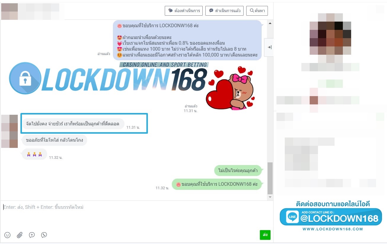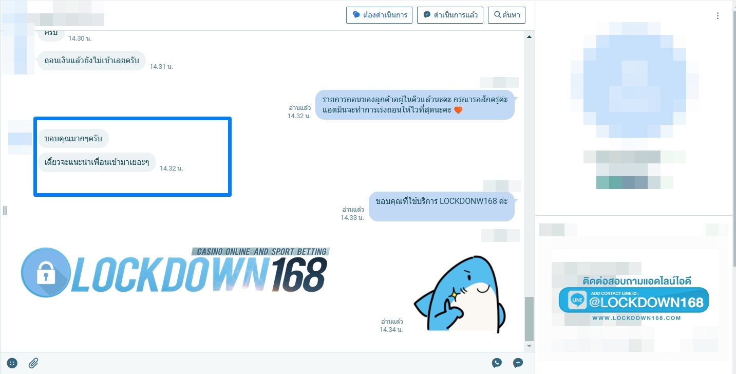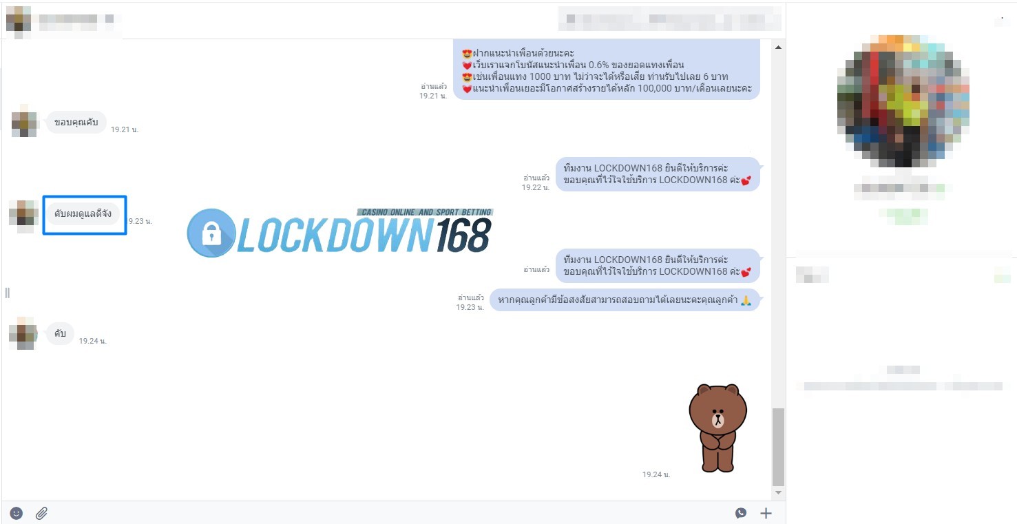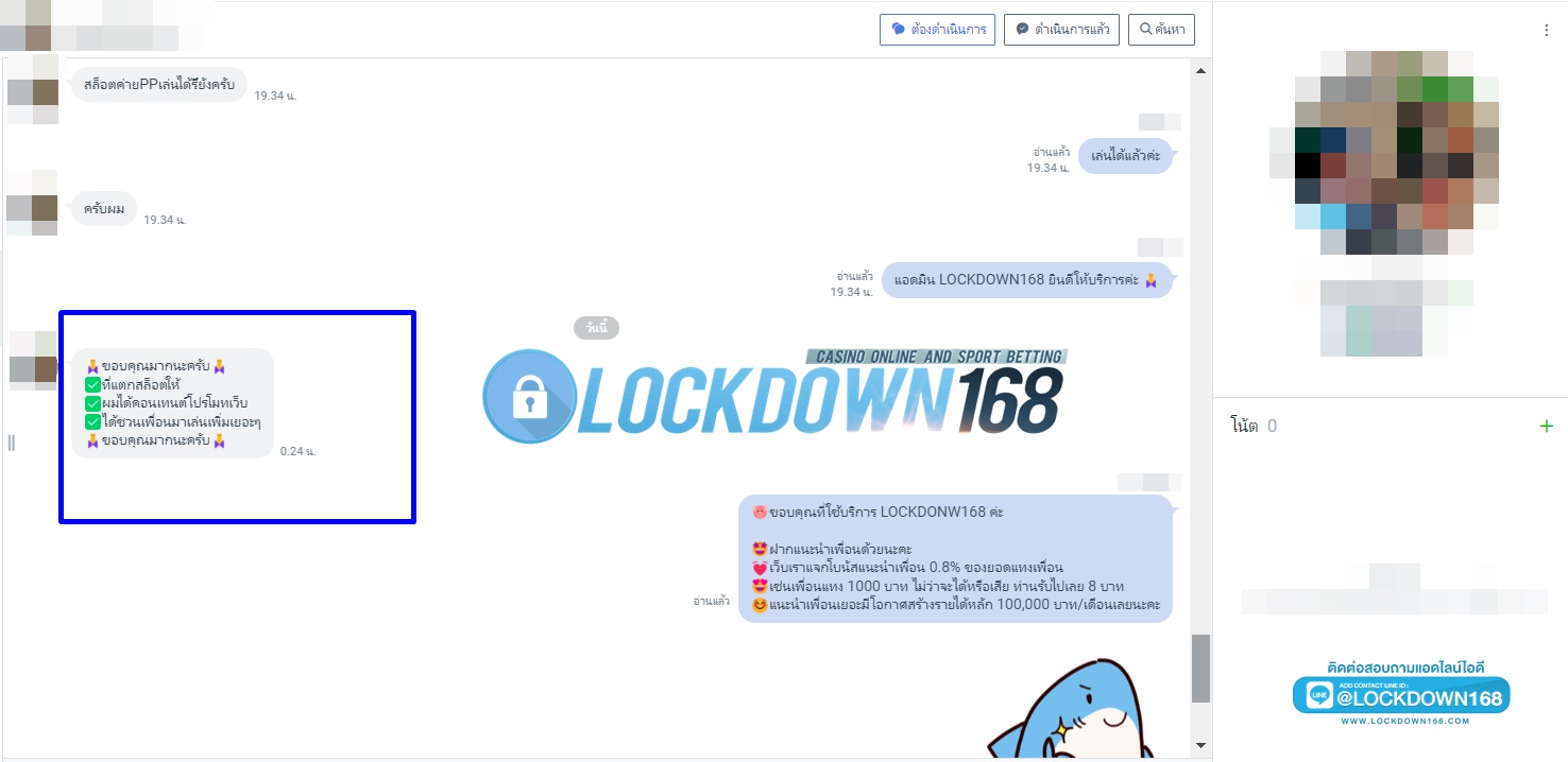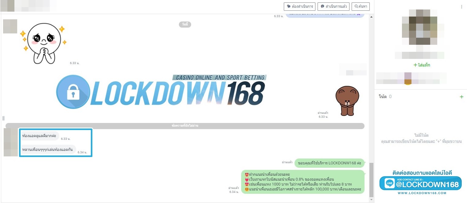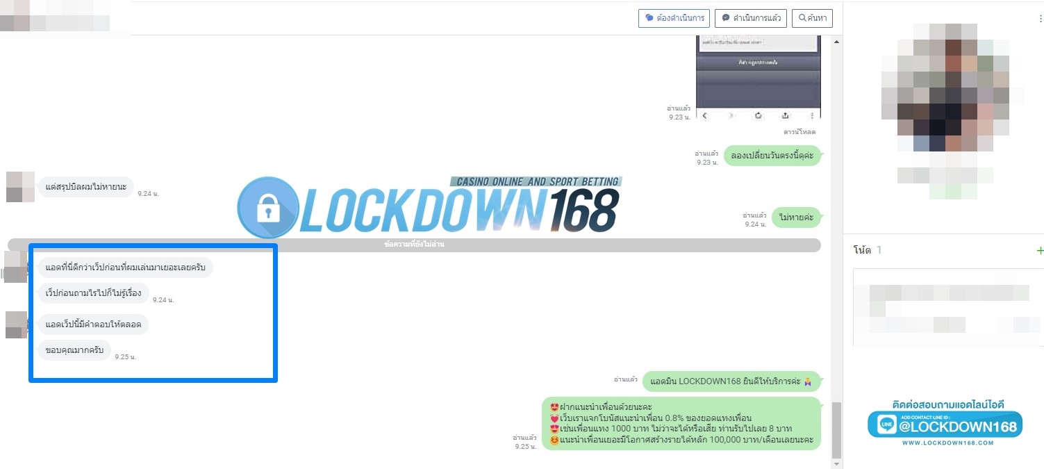 LOCKDOWN168.COM คาสิโนออนไลน์น้องใหม่ที่มาแรงที่สุดในตอนนี้ ด้วยระบบฝาก-ถอนอัตโนมัติ ที่ใช้เทคโนโลยีการจับยอดแบบใหม่ จับยอดฝากได้ภายใน 10 วินาที สามารถเล่นได้ทันทีหลังทำการโอนเงิน และระบบถอนเงินที่สามารถถอนเงินที่หน้าเว็ปได้ด้วยตัวท่านเอง โดยไม่ต้องแจ้งแอดมินและยอดเงินจะเข้าหลังจากทำการถอนภายใน 5 นาที เว็ปของเราคำนึงถึงความสะดวกสบายของลูกค้าเป็นหลัก หากลูกค้าพบปัญหาใดๆก็จะมีเจ้าหน้าที่แอดมินค่อยดูแลอำนวยความสะดวกให้คุณลูกค้าตลอด 24 ชั่วโมง