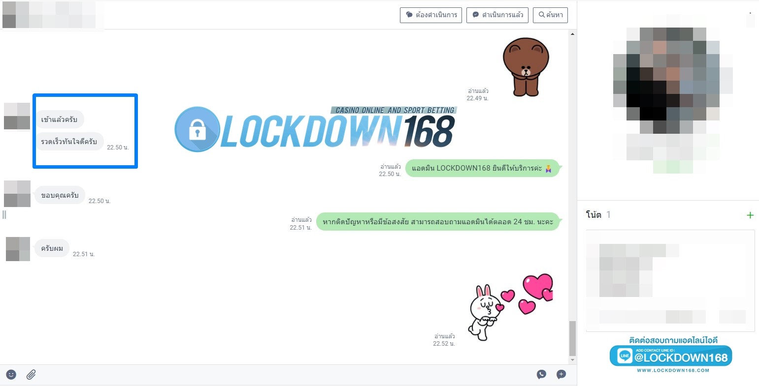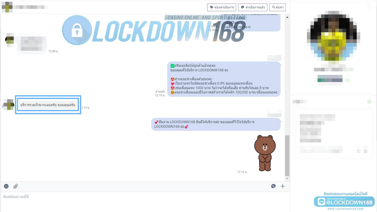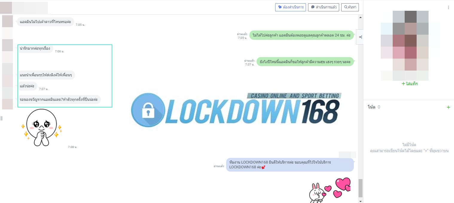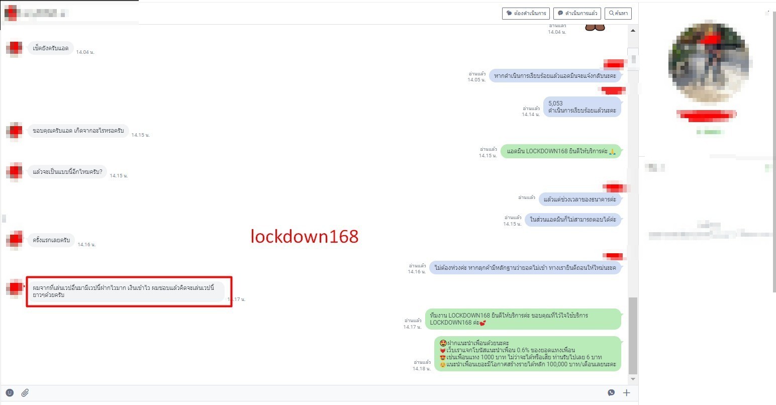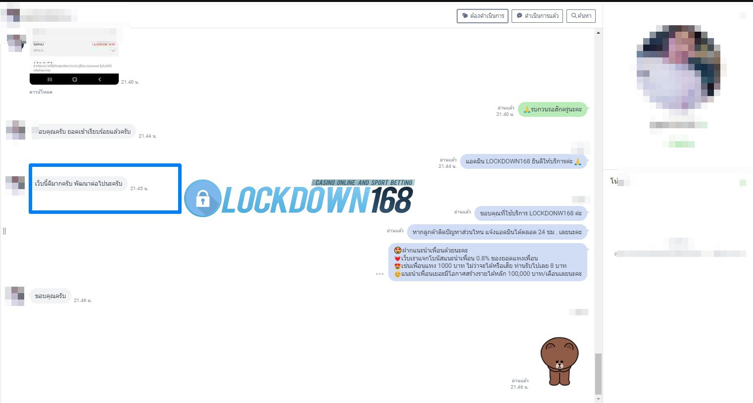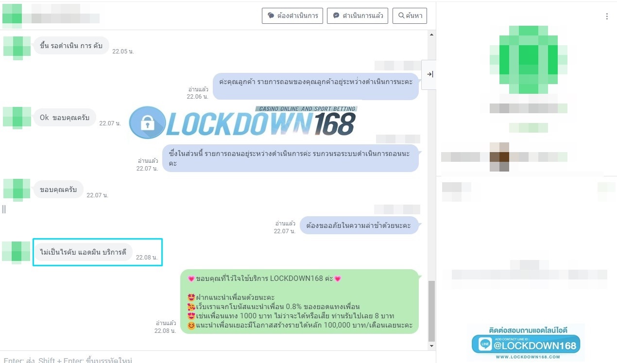 LOCKDOWN168.COM คาสิโนออนไลน์น้องใหม่ที่มาแรงที่สุดในตอนนี้ ด้วยระบบฝาก-ถอนอัตโนมัติ ที่ใช้เทคโนโลยีการจับยอดแบบใหม่ จับยอดฝากได้ภายใน 10 วินาที สามารถเล่นได้ทันทีหลังทำการโอนเงิน และระบบถอนเงินที่สามารถถอนเงินที่หน้าเว็ปได้ด้วยตัวท่านเอง โดยไม่ต้องแจ้งแอดมินและยอดเงินจะเข้าหลังจากทำการถอนภายใน 5 นาที เว็ปของเราคำนึงถึงความสะดวกสบายของลูกค้าเป็นหลัก หากลูกค้าพบปัญหาใดๆก็จะมีเจ้าหน้าที่แอดมินค่อยดูแลอำนวยความสะดวกให้คุณลูกค้าตลอด 24 ชั่วโมง