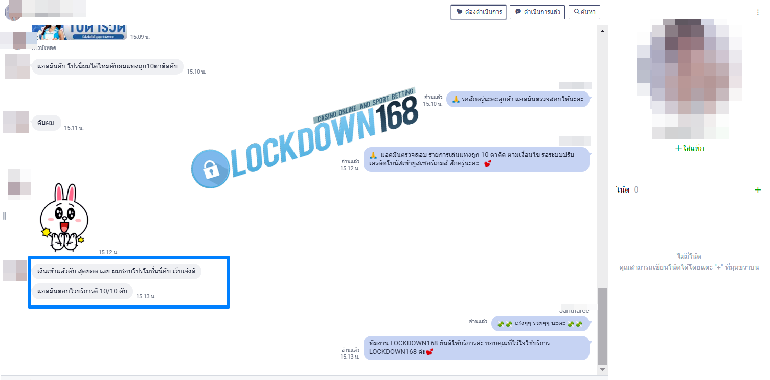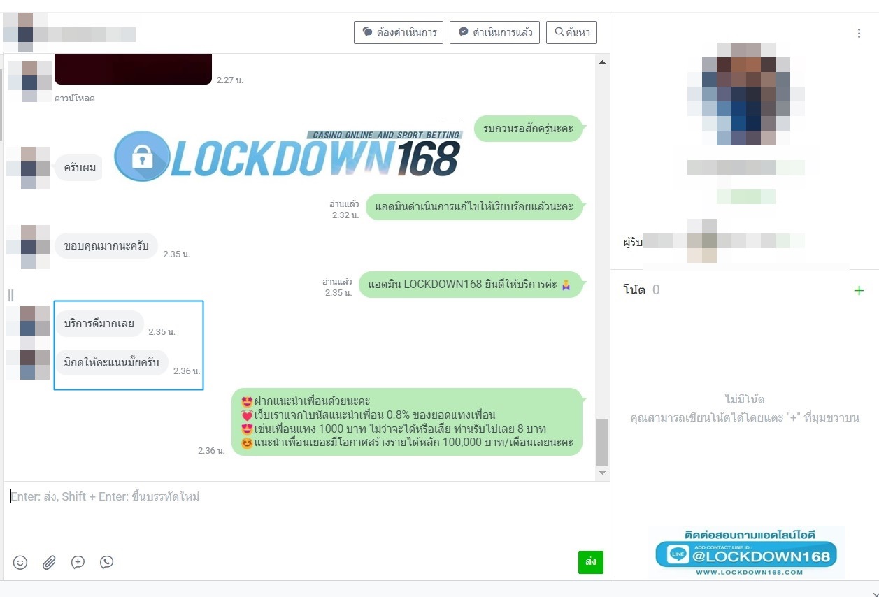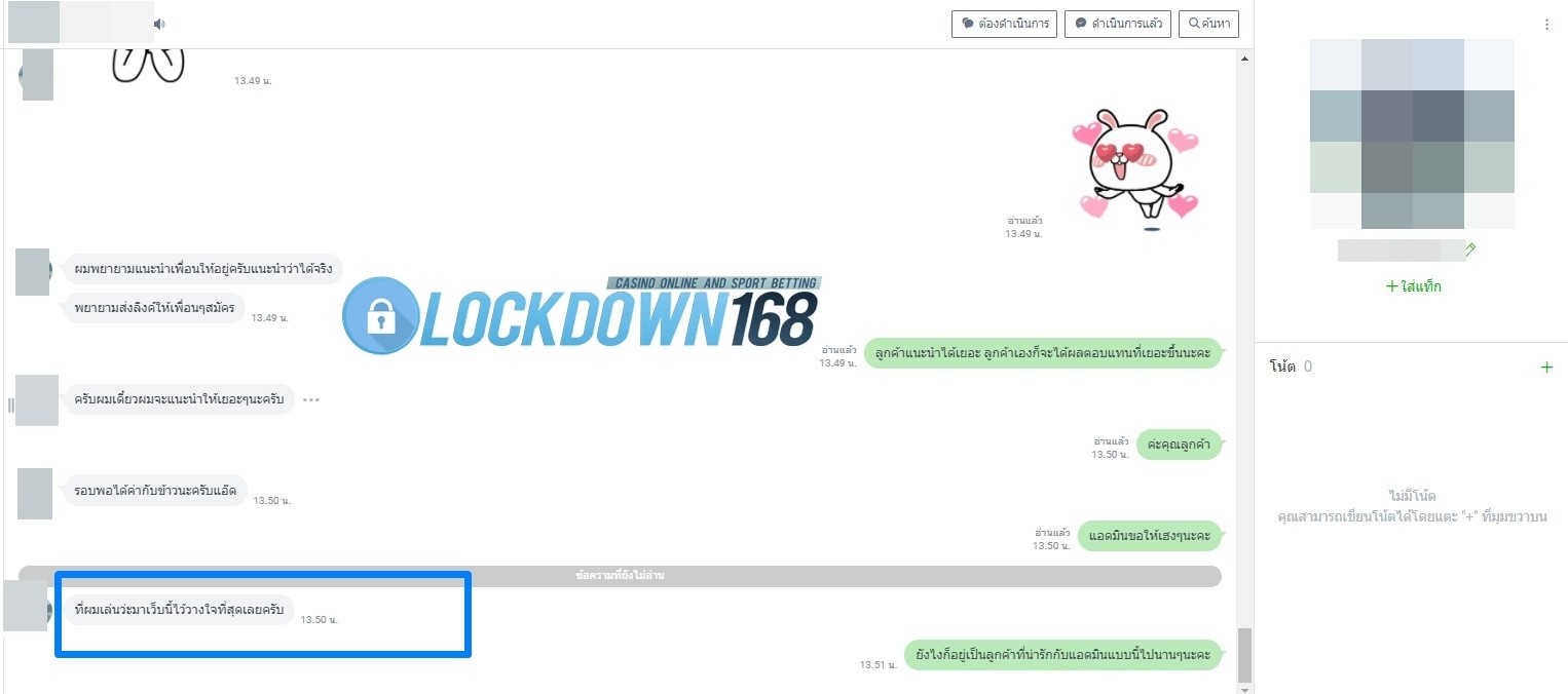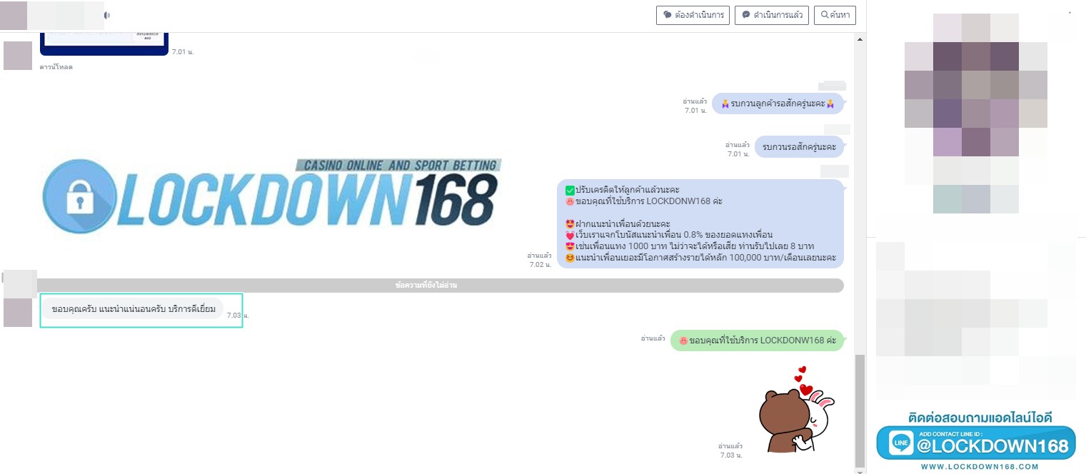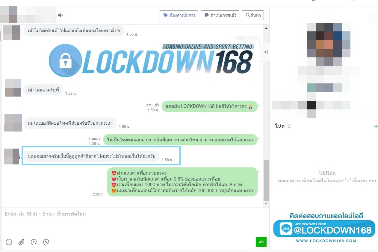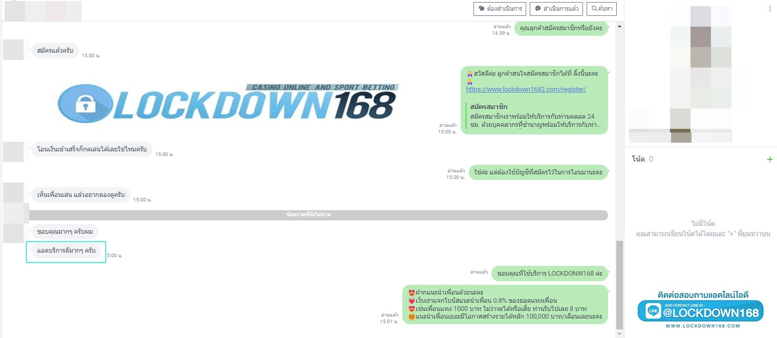 LOCKDOWN168.COM คาสิโนออนไลน์น้องใหม่ที่มาแรงที่สุดในตอนนี้ ด้วยระบบฝาก-ถอนอัตโนมัติ ที่ใช้เทคโนโลยีการจับยอดแบบใหม่ จับยอดฝากได้ภายใน 10 วินาที สามารถเล่นได้ทันทีหลังทำการโอนเงิน และระบบถอนเงินที่สามารถถอนเงินที่หน้าเว็ปได้ด้วยตัวท่านเอง โดยไม่ต้องแจ้งแอดมินและยอดเงินจะเข้าหลังจากทำการถอนภายใน 5 นาที เว็ปของเราคำนึงถึงความสะดวกสบายของลูกค้าเป็นหลัก หากลูกค้าพบปัญหาใดๆก็จะมีเจ้าหน้าที่แอดมินค่อยดูแลอำนวยความสะดวกให้คุณลูกค้าตลอด 24 ชั่วโมง