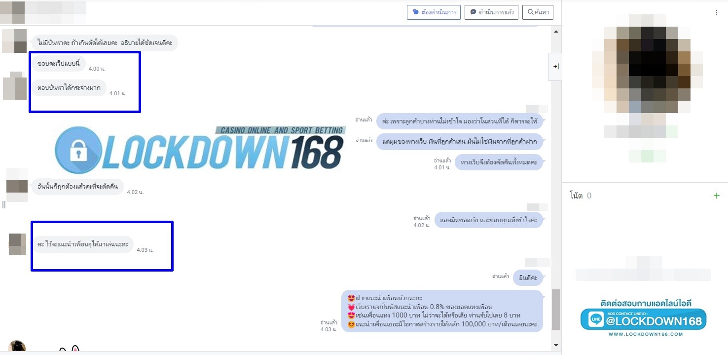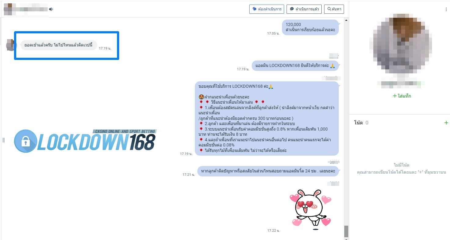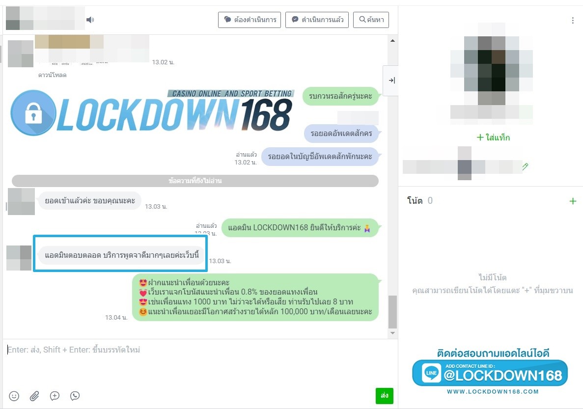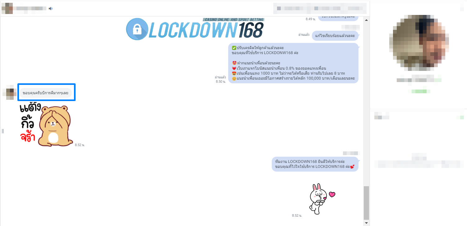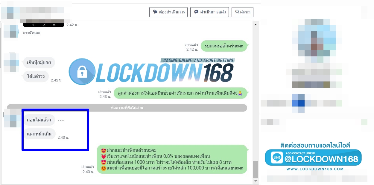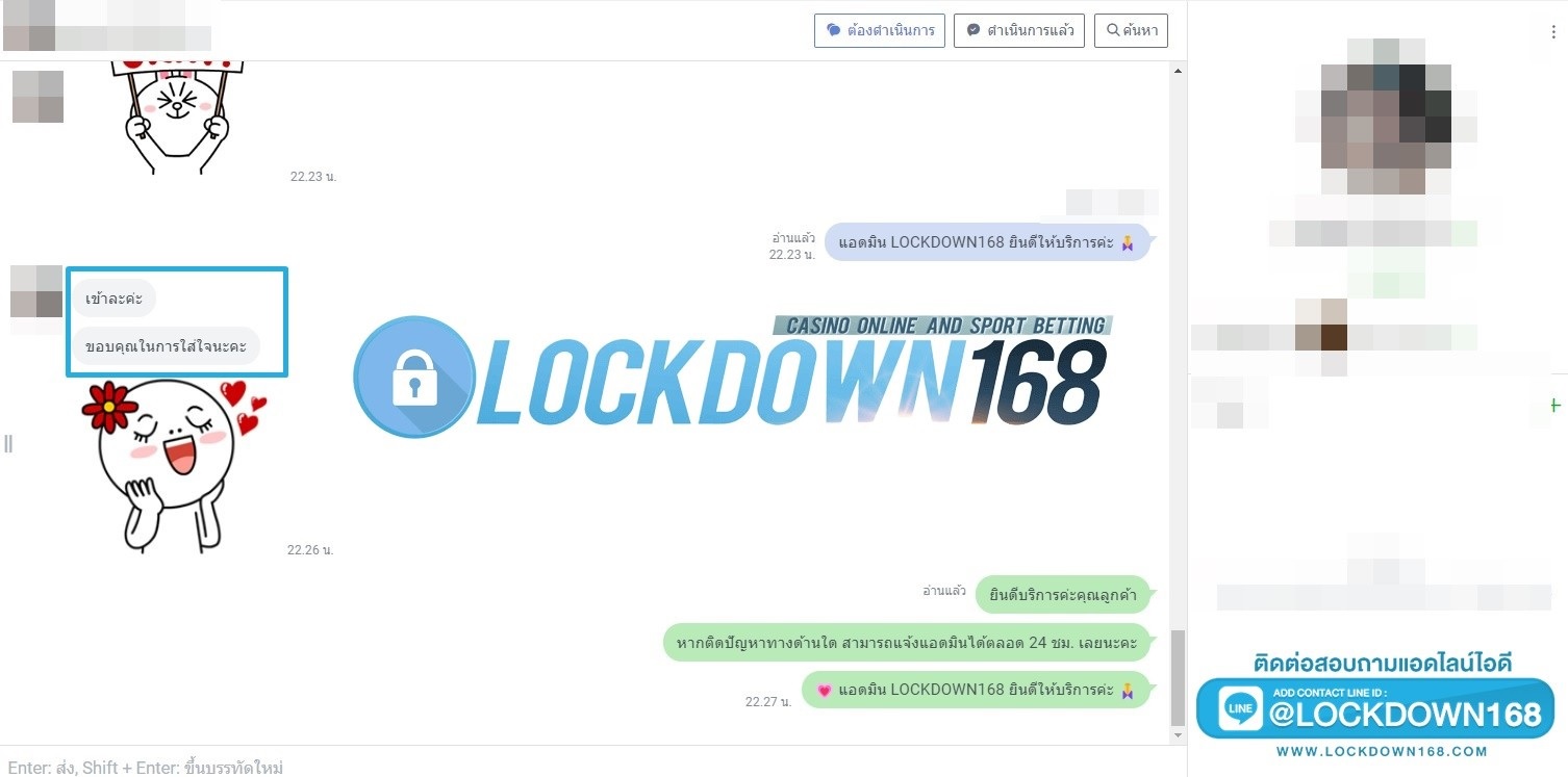 LOCKDOWN168.COM คาสิโนออนไลน์น้องใหม่ที่มาแรงที่สุดในตอนนี้ ด้วยระบบฝาก-ถอนอัตโนมัติ ที่ใช้เทคโนโลยีการจับยอดแบบใหม่ จับยอดฝากได้ภายใน 10 วินาที สามารถเล่นได้ทันทีหลังทำการโอนเงิน และระบบถอนเงินที่สามารถถอนเงินที่หน้าเว็ปได้ด้วยตัวท่านเอง โดยไม่ต้องแจ้งแอดมินและยอดเงินจะเข้าหลังจากทำการถอนภายใน 5 นาที เว็ปของเราคำนึงถึงความสะดวกสบายของลูกค้าเป็นหลัก หากลูกค้าพบปัญหาใดๆก็จะมีเจ้าหน้าที่แอดมินค่อยดูแลอำนวยความสะดวกให้คุณลูกค้าตลอด 24 ชั่วโมง