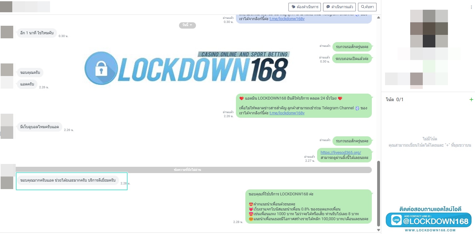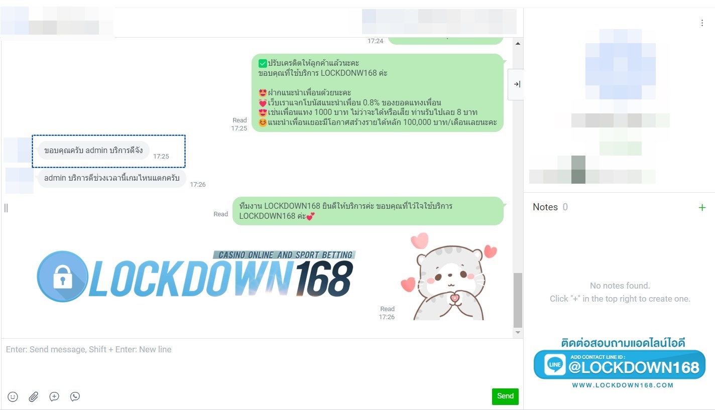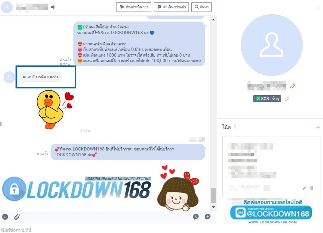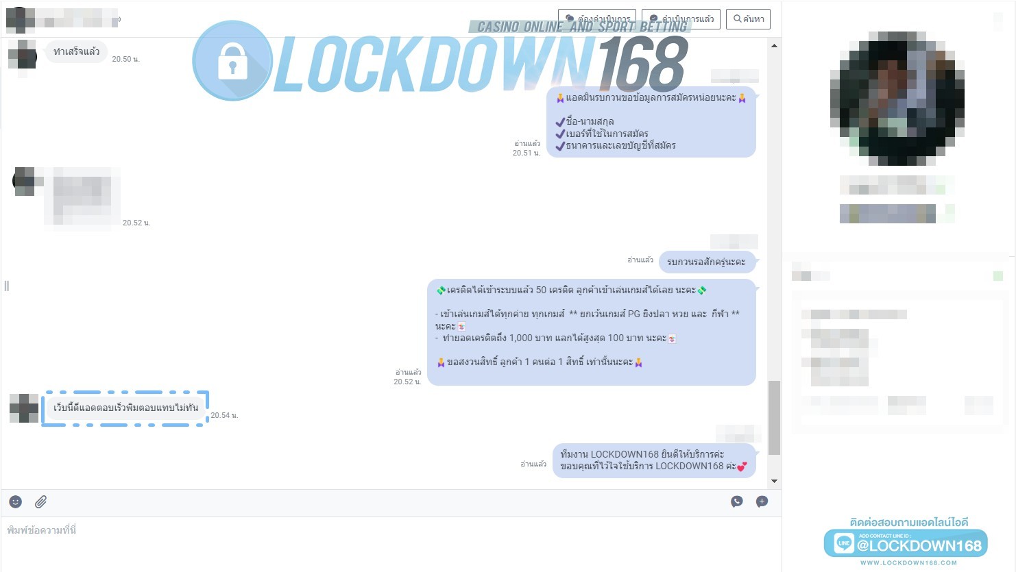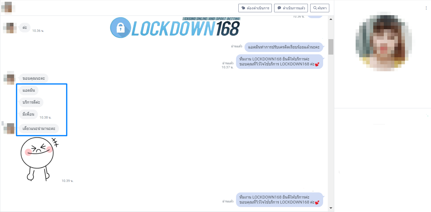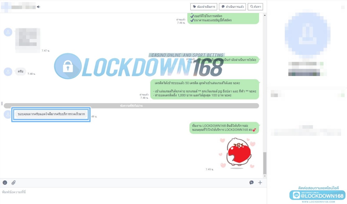 LOCKDOWN168.COM คาสิโนออนไลน์น้องใหม่ที่มาแรงที่สุดในตอนนี้ ด้วยระบบฝาก-ถอนอัตโนมัติ ที่ใช้เทคโนโลยีการจับยอดแบบใหม่ จับยอดฝากได้ภายใน 10 วินาที สามารถเล่นได้ทันทีหลังทำการโอนเงิน และระบบถอนเงินที่สามารถถอนเงินที่หน้าเว็ปได้ด้วยตัวท่านเอง โดยไม่ต้องแจ้งแอดมินและยอดเงินจะเข้าหลังจากทำการถอนภายใน 5 นาที เว็ปของเราคำนึงถึงความสะดวกสบายของลูกค้าเป็นหลัก หากลูกค้าพบปัญหาใดๆก็จะมีเจ้าหน้าที่แอดมินค่อยดูแลอำนวยความสะดวกให้คุณลูกค้าตลอด 24 ชั่วโมง