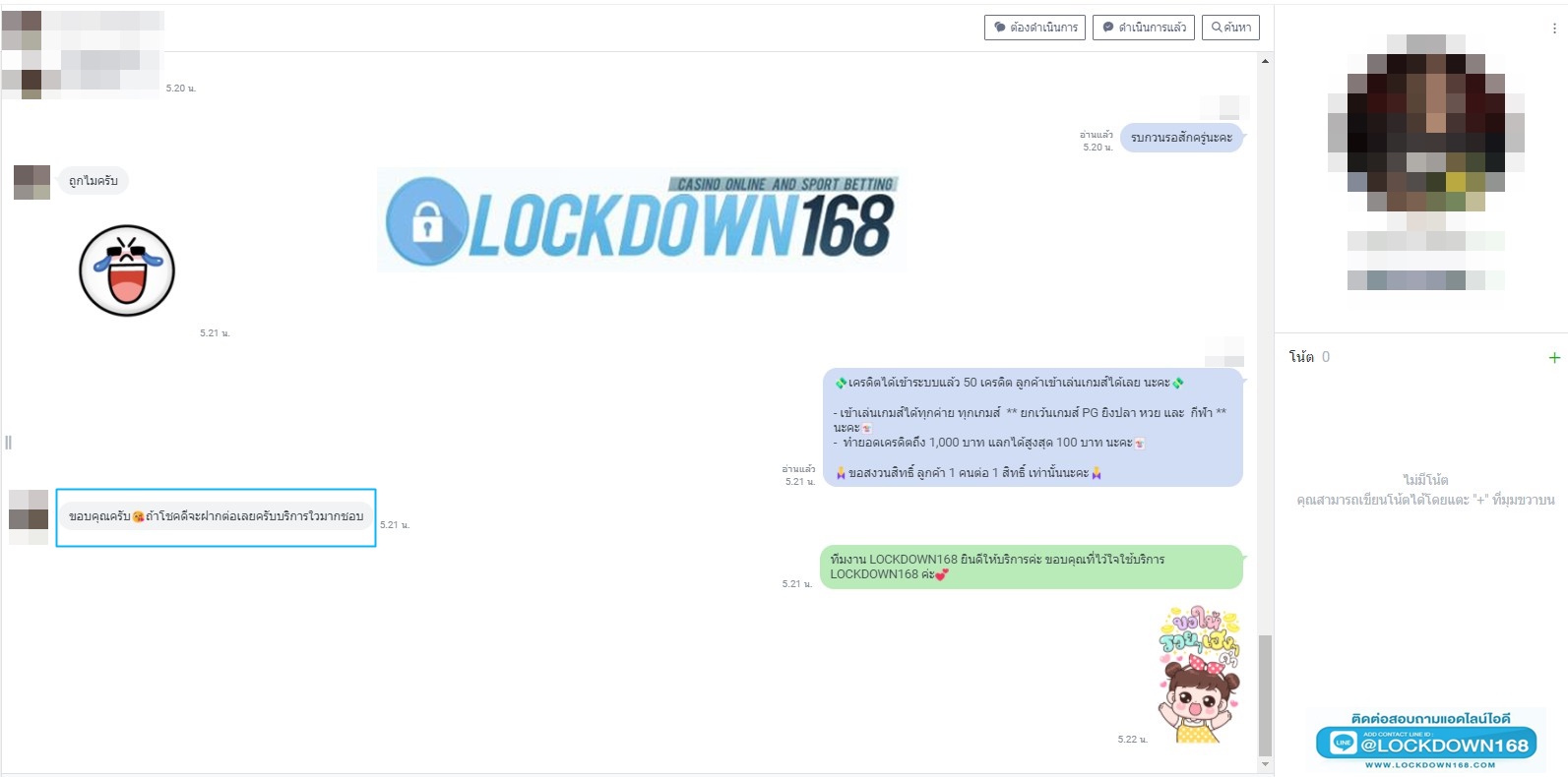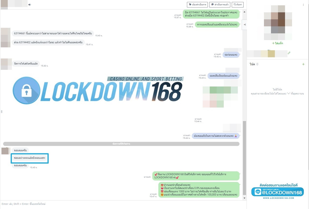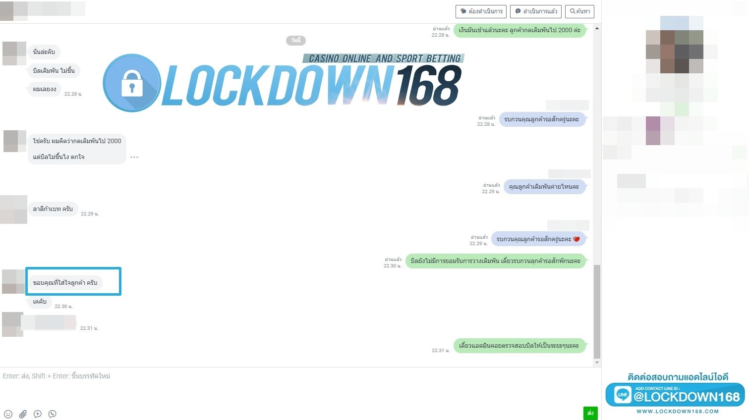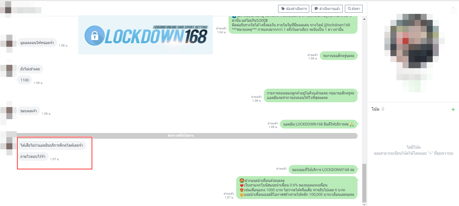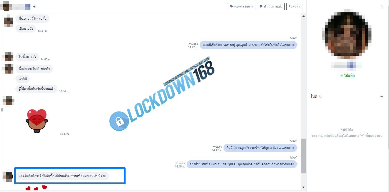 LOCKDOWN168.COM คาสิโนออนไลน์น้องใหม่ที่มาแรงที่สุดในตอนนี้ ด้วยระบบฝาก-ถอนอัตโนมัติ ที่ใช้เทคโนโลยีการจับยอดแบบใหม่ จับยอดฝากได้ภายใน 10 วินาที สามารถเล่นได้ทันทีหลังทำการโอนเงิน และระบบถอนเงินที่สามารถถอนเงินที่หน้าเว็ปได้ด้วยตัวท่านเอง โดยไม่ต้องแจ้งแอดมินและยอดเงินจะเข้าหลังจากทำการถอนภายใน 5 นาที เว็ปของเราคำนึงถึงความสะดวกสบายของลูกค้าเป็นหลัก หากลูกค้าพบปัญหาใดๆก็จะมีเจ้าหน้าที่แอดมินค่อยดูแลอำนวยความสะดวกให้คุณลูกค้าตลอด 24 ชั่วโมง