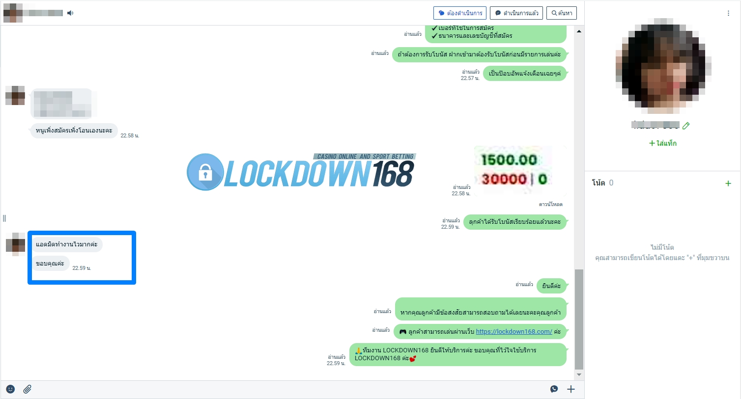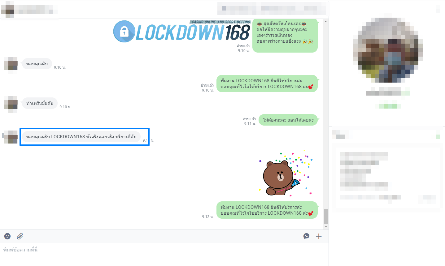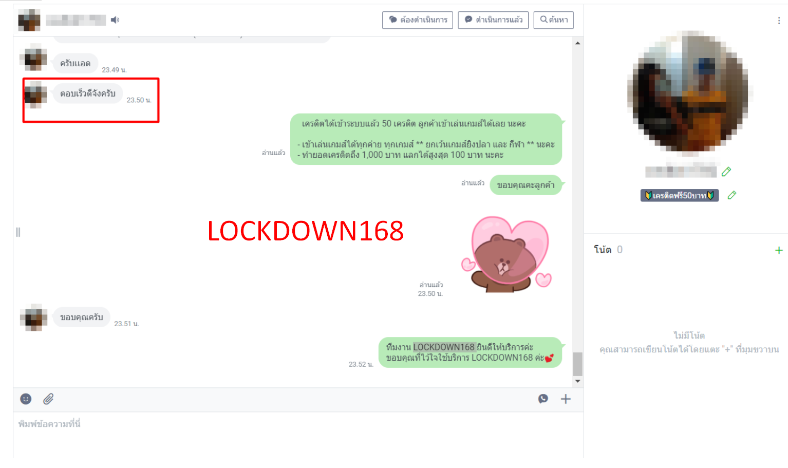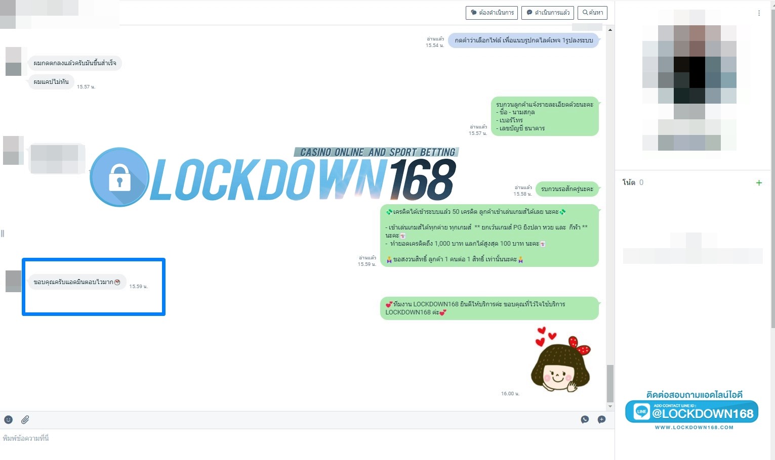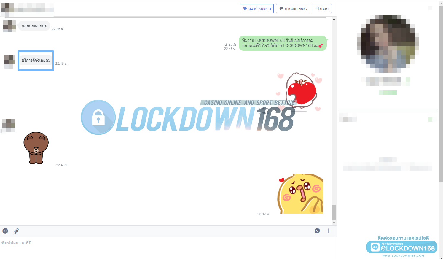LOCKDOWN168.COM คาสิโนออนไลน์น้องใหม่ที่มาแรงที่สุดในตอนนี้ ด้วยระบบฝาก-ถอนอัตโนมัติ ที่ใช้เทคโนโลยีการจับยอดแบบใหม่ จับยอดฝากได้ภายใน 10 วินาที สามารถเล่นได้ทันทีหลังทำการโอนเงิน และระบบถอนเงินที่สามารถถอนเงินที่หน้าเว็ปได้ด้วยตัวท่านเอง โดยไม่ต้องแจ้งแอดมินและยอดเงินจะเข้าหลังจากทำการถอนภายใน 5 นาที เว็ปของเราคำนึงถึงความสะดวกสบายของลูกค้าเป็นหลัก หากลูกค้าพบปัญหาใดๆก็จะมีเจ้าหน้าที่แอดมินค่อยดูแลอำนวยความสะดวกให้คุณลูกค้าตลอด 24 ชั่วโมง
