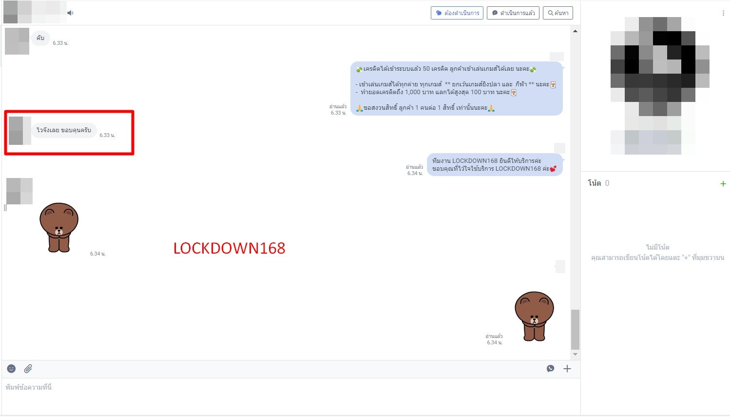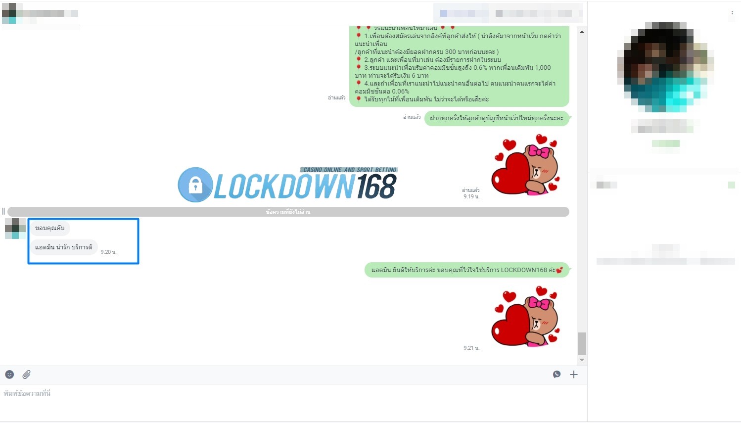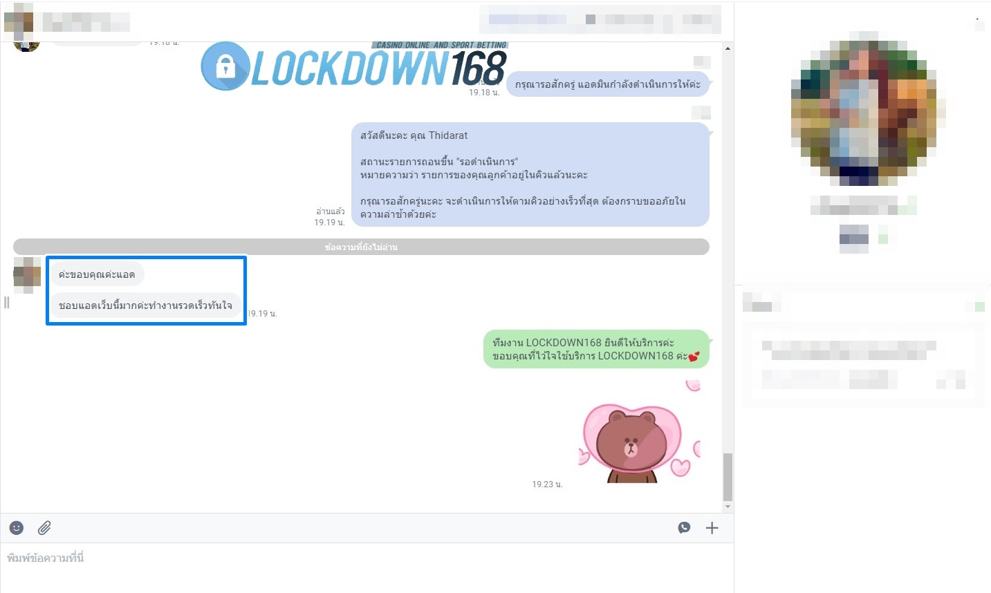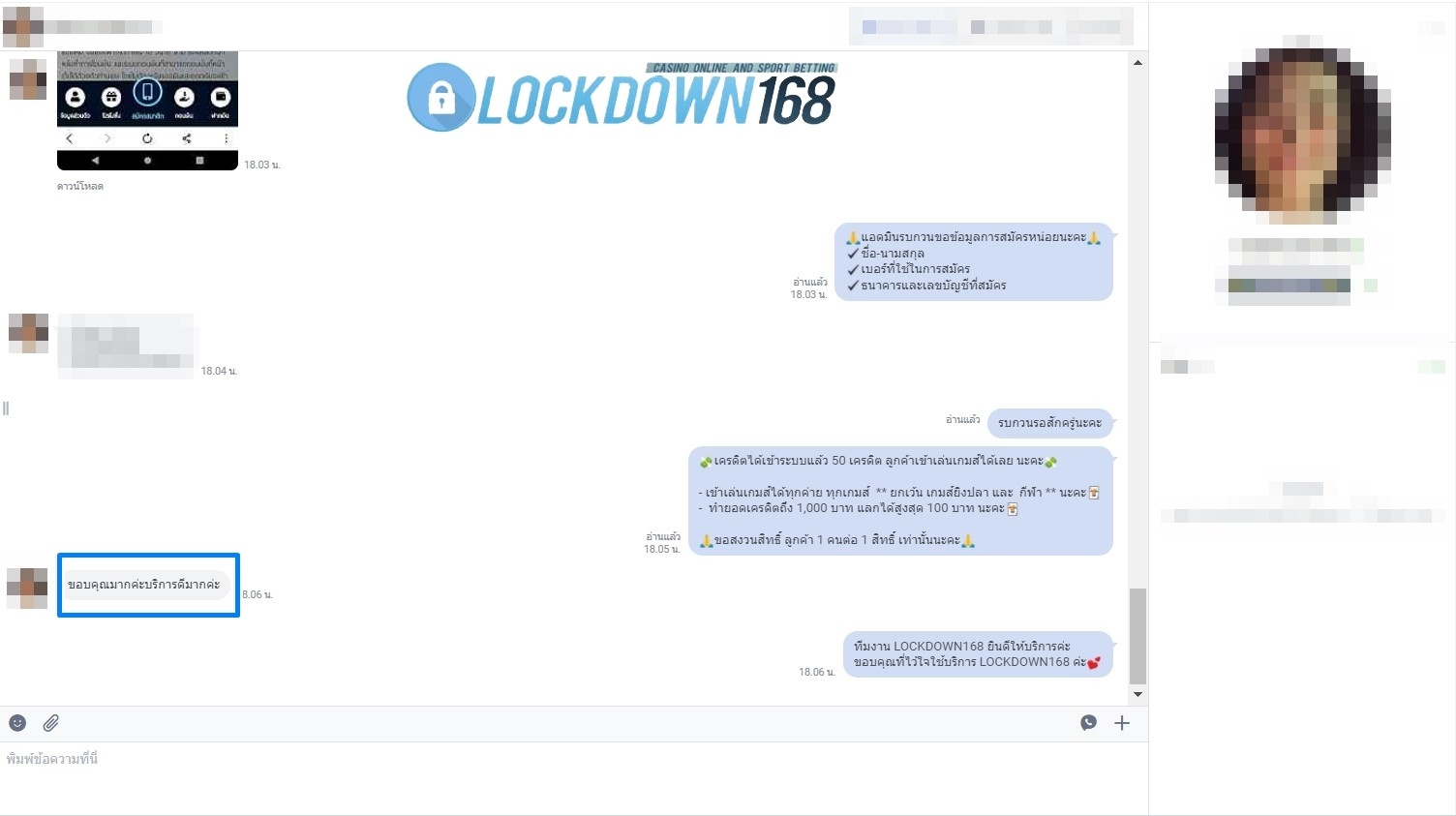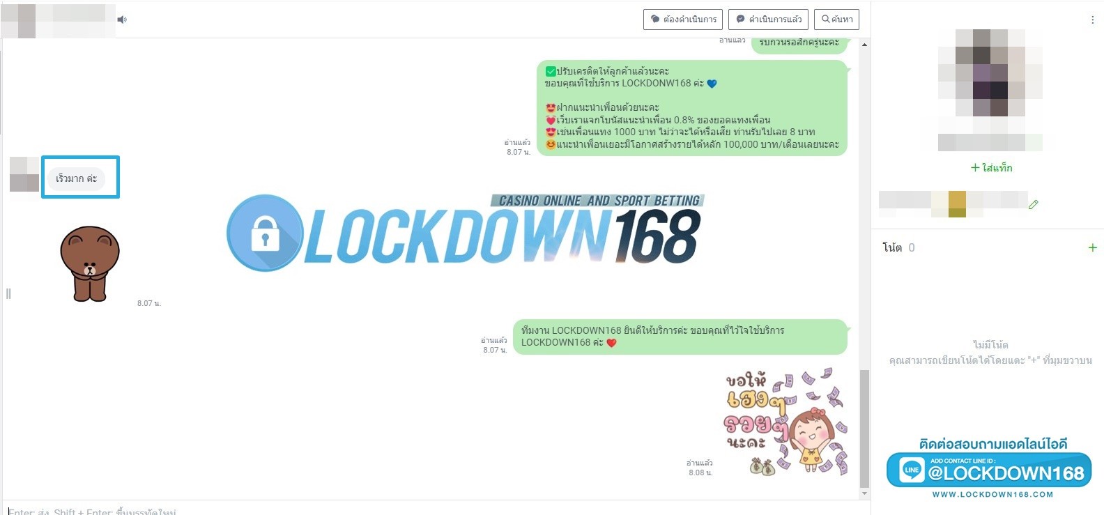 LOCKDOWN168.COM คาสิโนออนไลน์น้องใหม่ที่มาแรงที่สุดในตอนนี้ ด้วยระบบฝาก-ถอนอัตโนมัติ ที่ใช้เทคโนโลยีการจับยอดแบบใหม่ จับยอดฝากได้ภายใน 10 วินาที สามารถเล่นได้ทันทีหลังทำการโอนเงิน และระบบถอนเงินที่สามารถถอนเงินที่หน้าเว็ปได้ด้วยตัวท่านเอง โดยไม่ต้องแจ้งแอดมินและยอดเงินจะเข้าหลังจากทำการถอนภายใน 5 นาที เว็ปของเราคำนึงถึงความสะดวกสบายของลูกค้าเป็นหลัก หากลูกค้าพบปัญหาใดๆก็จะมีเจ้าหน้าที่แอดมินค่อยดูแลอำนวยความสะดวกให้คุณลูกค้าตลอด 24 ชั่วโมง