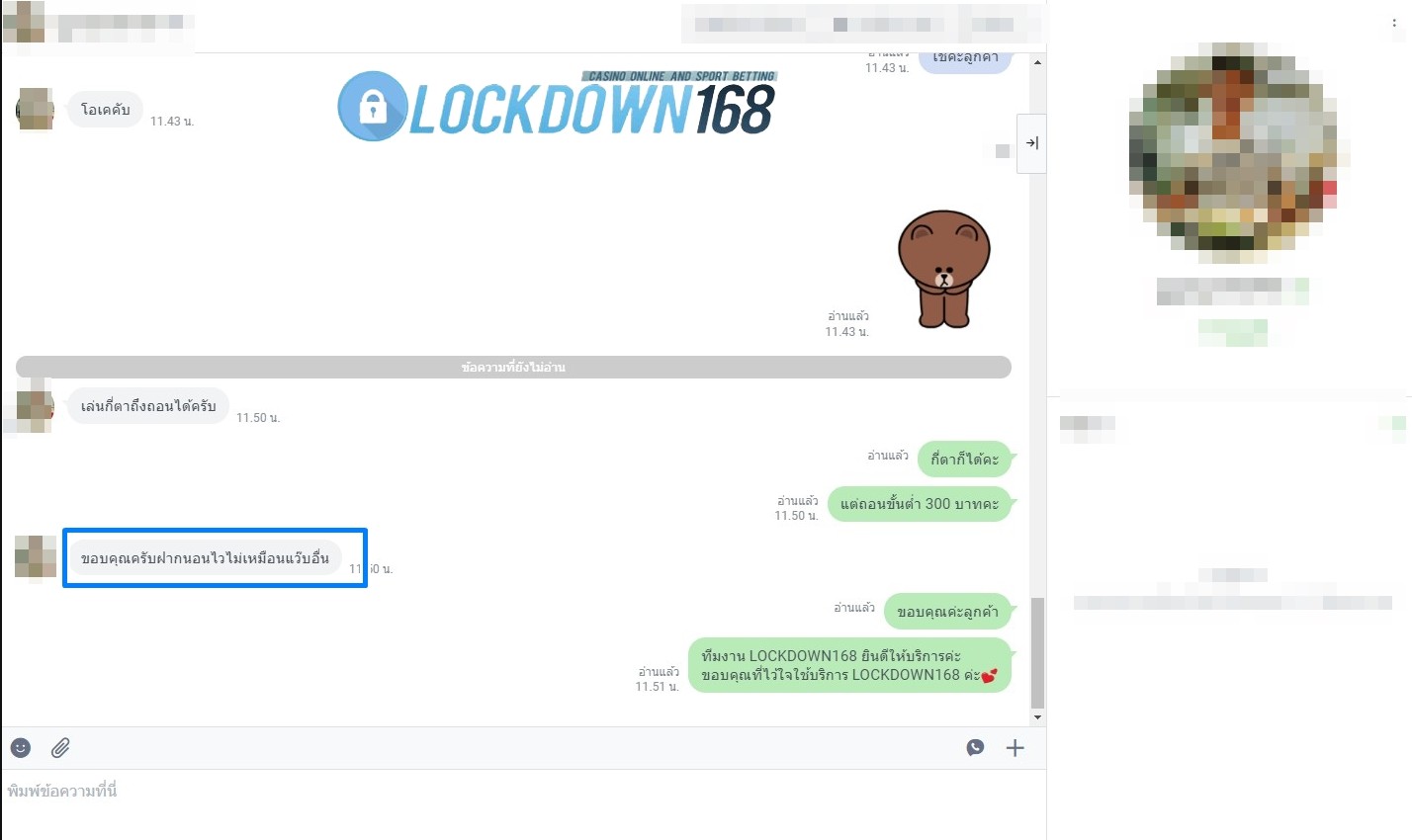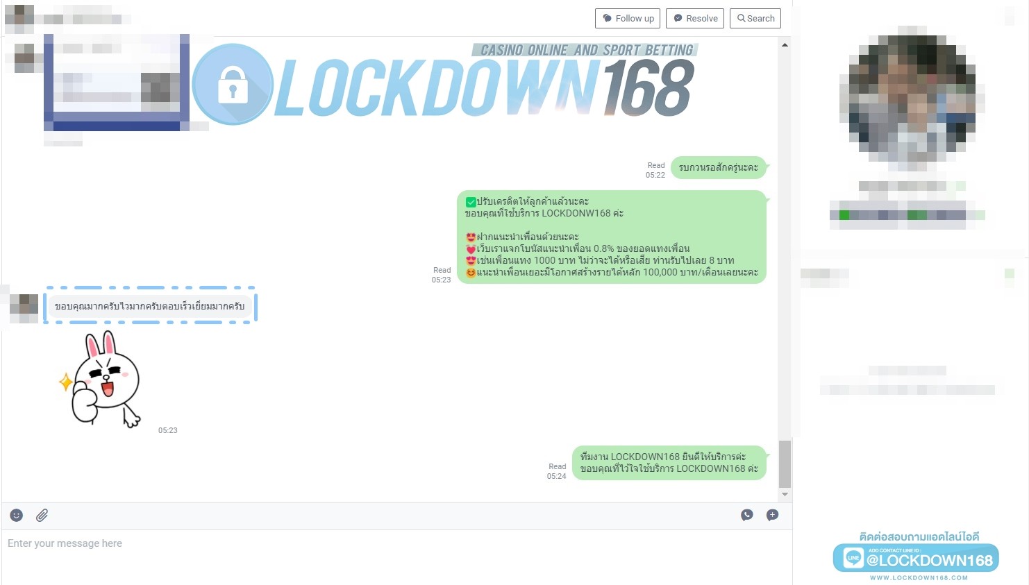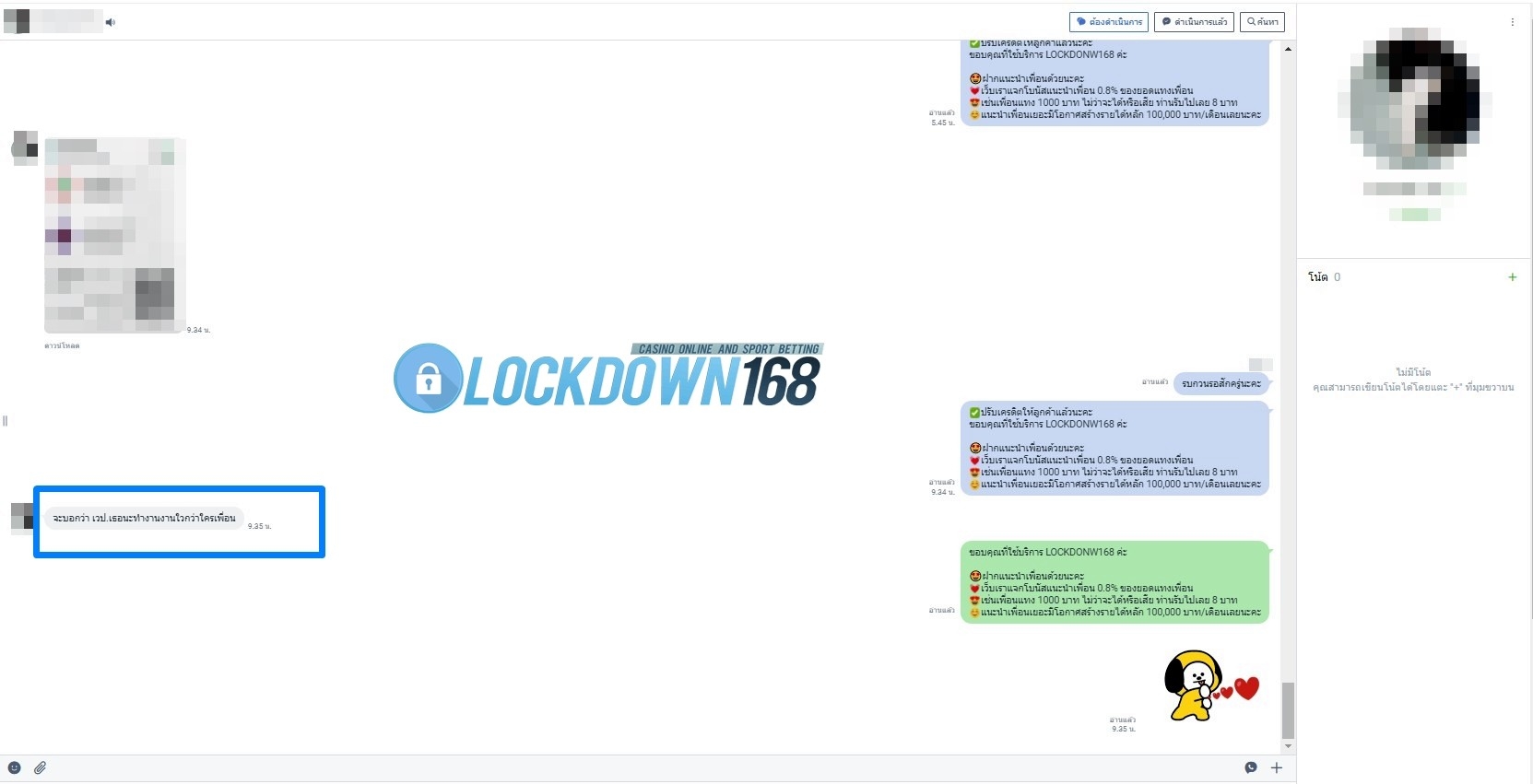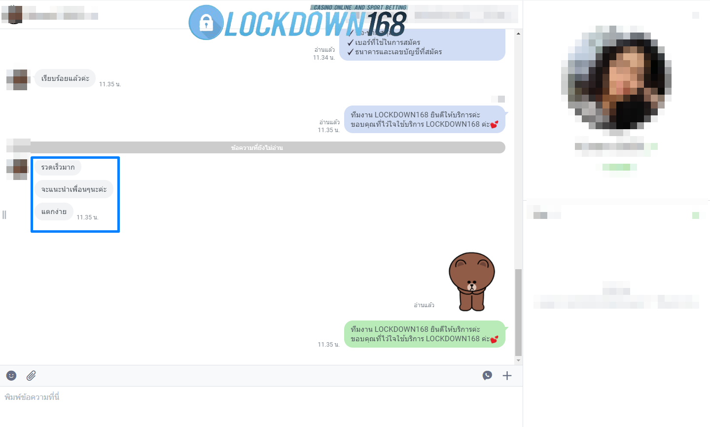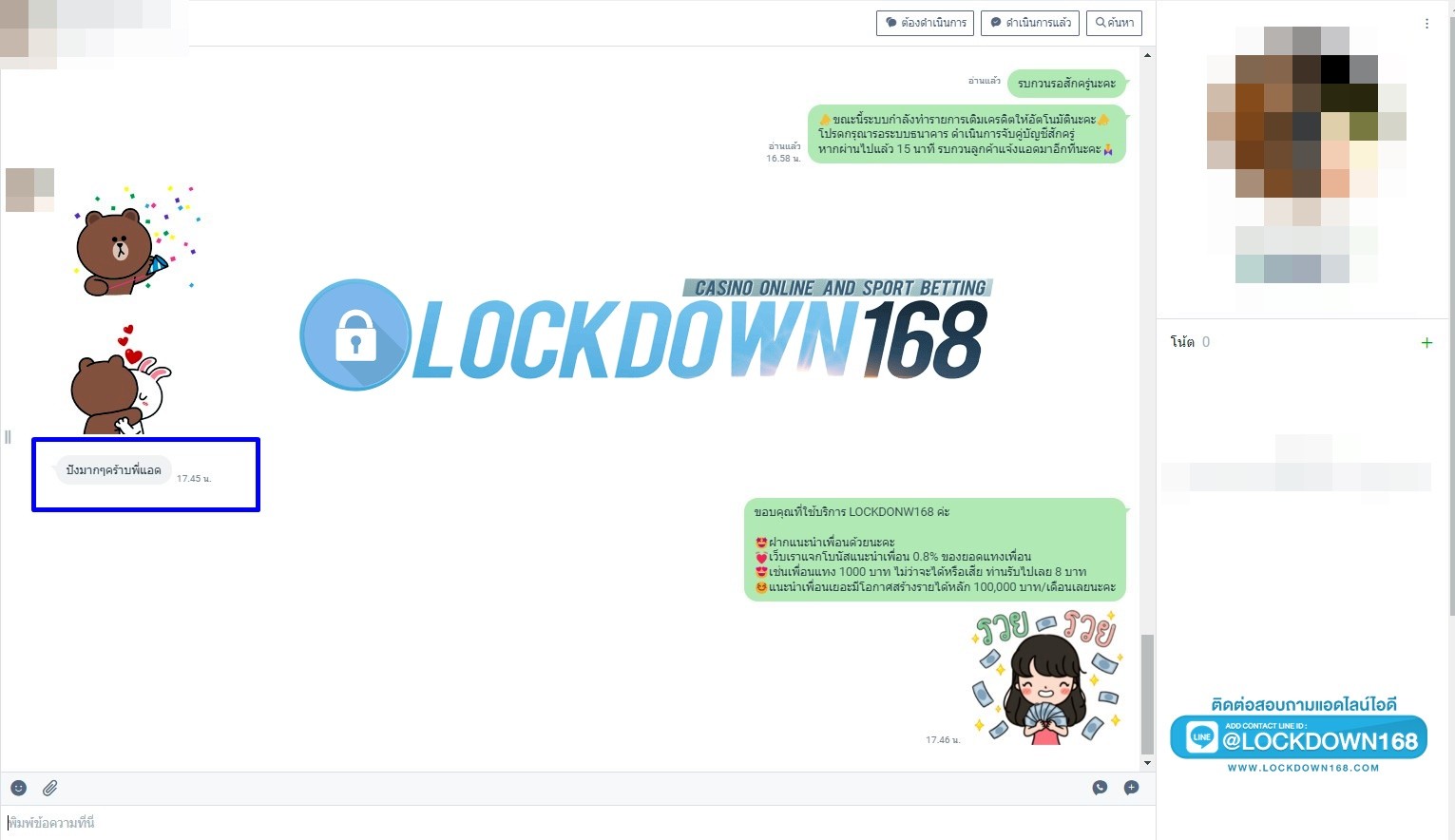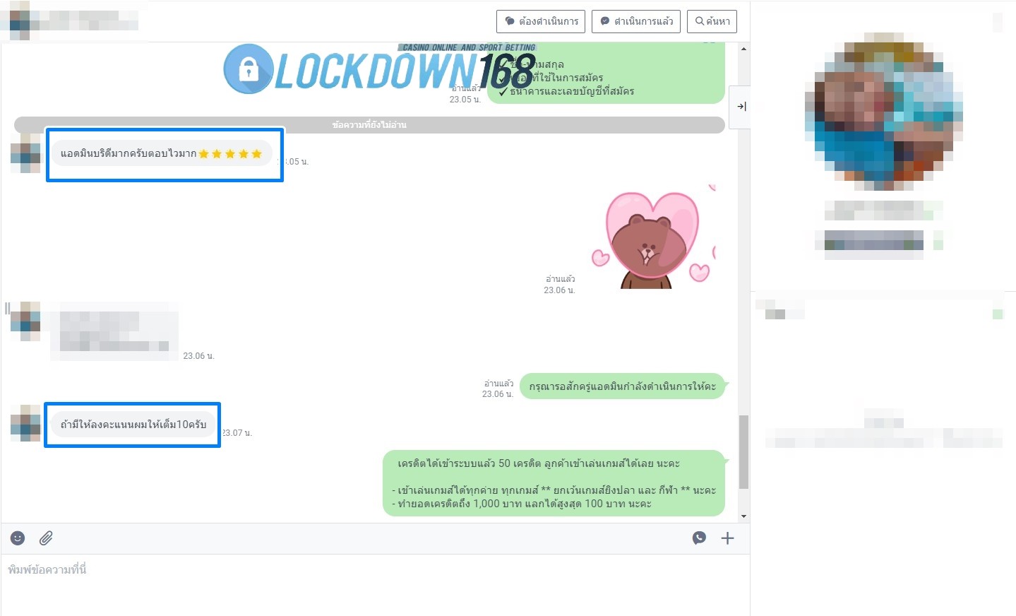 LOCKDOWN168.COM คาสิโนออนไลน์น้องใหม่ที่มาแรงที่สุดในตอนนี้ ด้วยระบบฝาก-ถอนอัตโนมัติ ที่ใช้เทคโนโลยีการจับยอดแบบใหม่ จับยอดฝากได้ภายใน 10 วินาที สามารถเล่นได้ทันทีหลังทำการโอนเงิน และระบบถอนเงินที่สามารถถอนเงินที่หน้าเว็ปได้ด้วยตัวท่านเอง โดยไม่ต้องแจ้งแอดมินและยอดเงินจะเข้าหลังจากทำการถอนภายใน 5 นาที เว็ปของเราคำนึงถึงความสะดวกสบายของลูกค้าเป็นหลัก หากลูกค้าพบปัญหาใดๆก็จะมีเจ้าหน้าที่แอดมินค่อยดูแลอำนวยความสะดวกให้คุณลูกค้าตลอด 24 ชั่วโมง