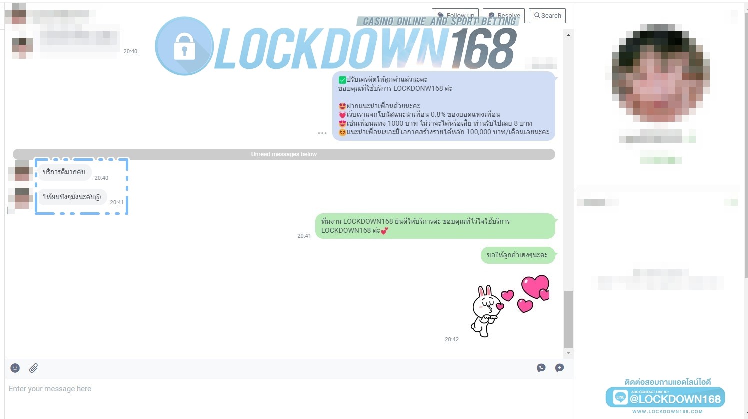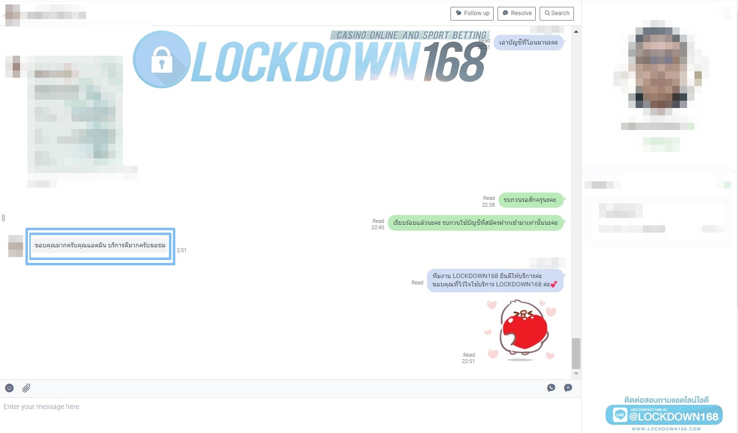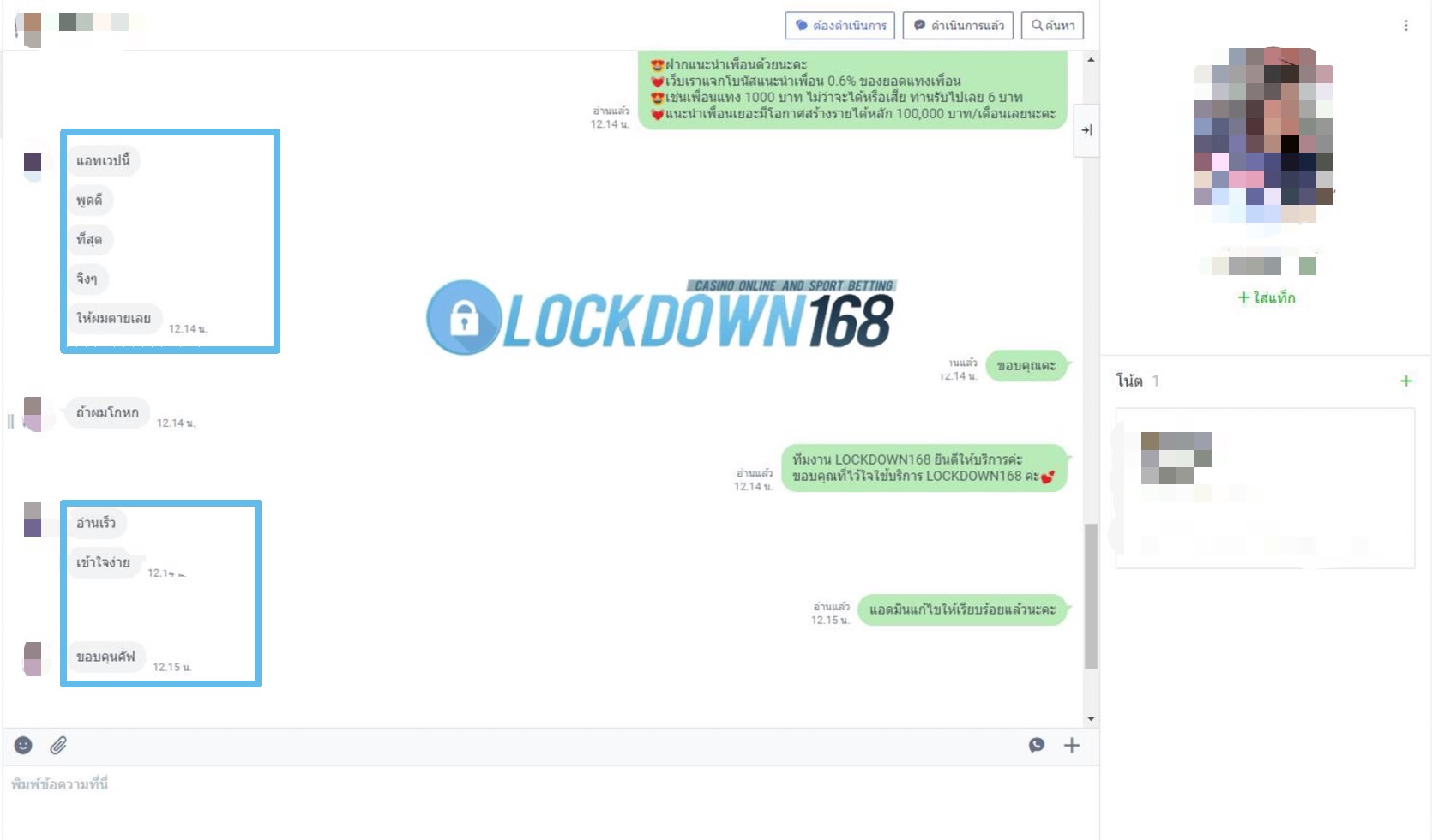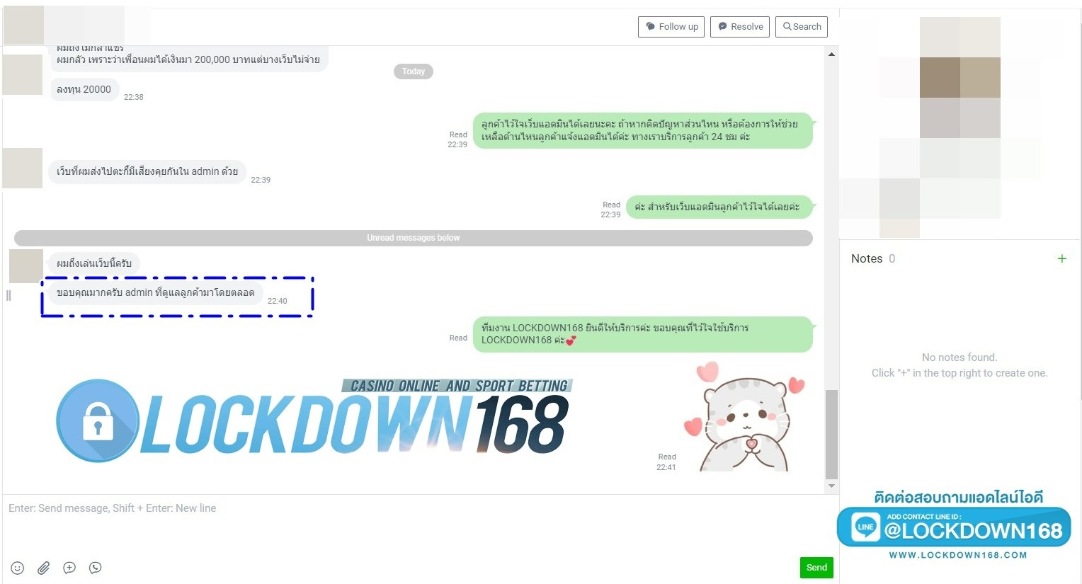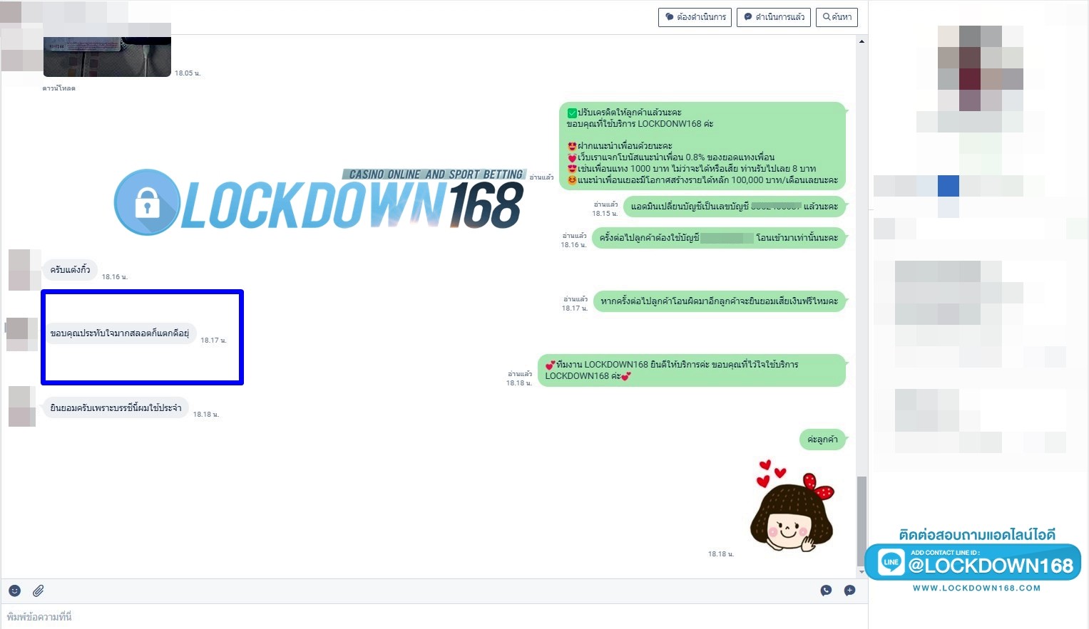 LOCKDOWN168.COM คาสิโนออนไลน์น้องใหม่ที่มาแรงที่สุดในตอนนี้ ด้วยระบบฝาก-ถอนอัตโนมัติ ที่ใช้เทคโนโลยีการจับยอดแบบใหม่ จับยอดฝากได้ภายใน 10 วินาที สามารถเล่นได้ทันทีหลังทำการโอนเงิน และระบบถอนเงินที่สามารถถอนเงินที่หน้าเว็ปได้ด้วยตัวท่านเอง โดยไม่ต้องแจ้งแอดมินและยอดเงินจะเข้าหลังจากทำการถอนภายใน 5 นาที เว็ปของเราคำนึงถึงความสะดวกสบายของลูกค้าเป็นหลัก หากลูกค้าพบปัญหาใดๆก็จะมีเจ้าหน้าที่แอดมินค่อยดูแลอำนวยความสะดวกให้คุณลูกค้าตลอด 24 ชั่วโมง