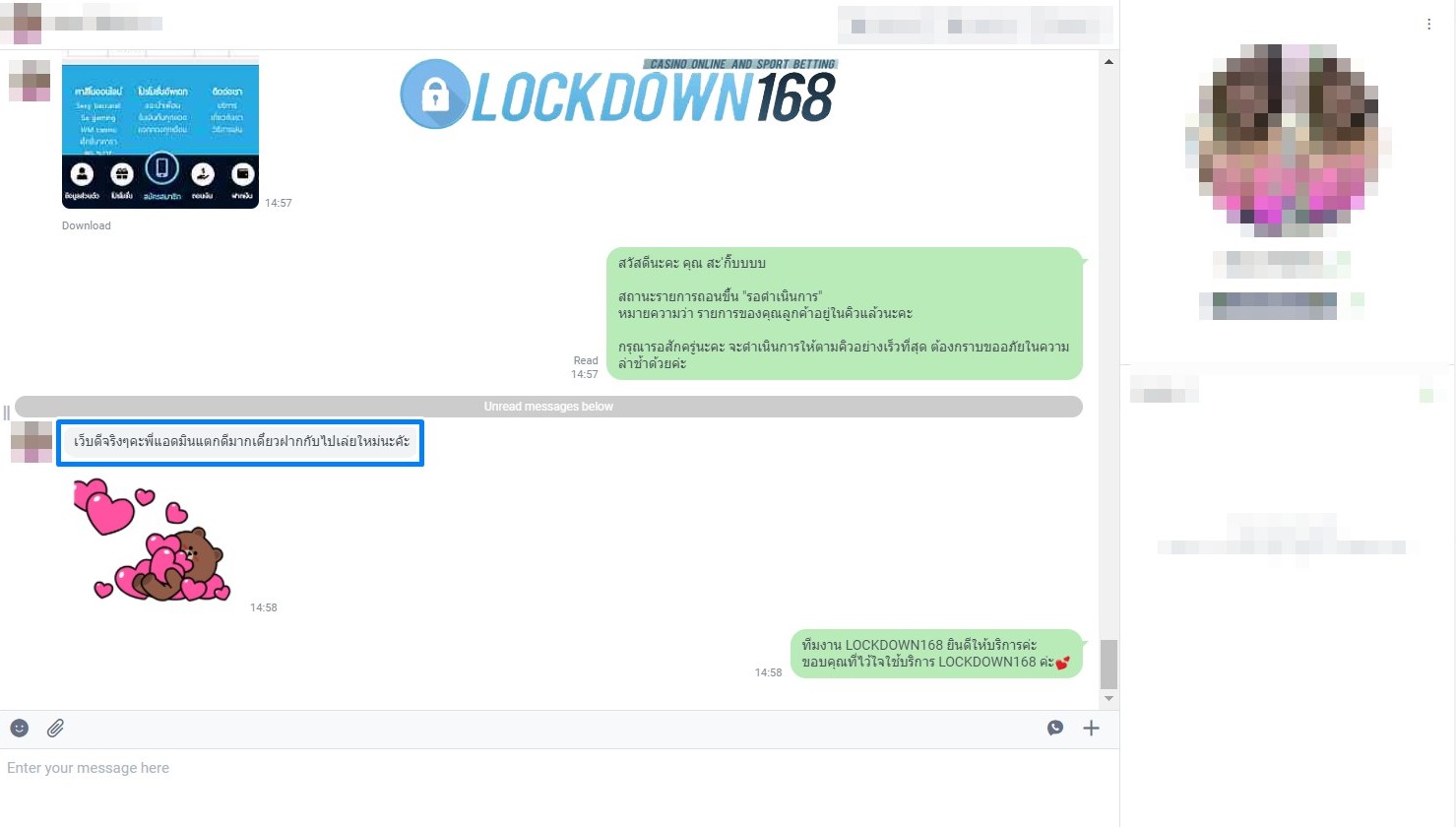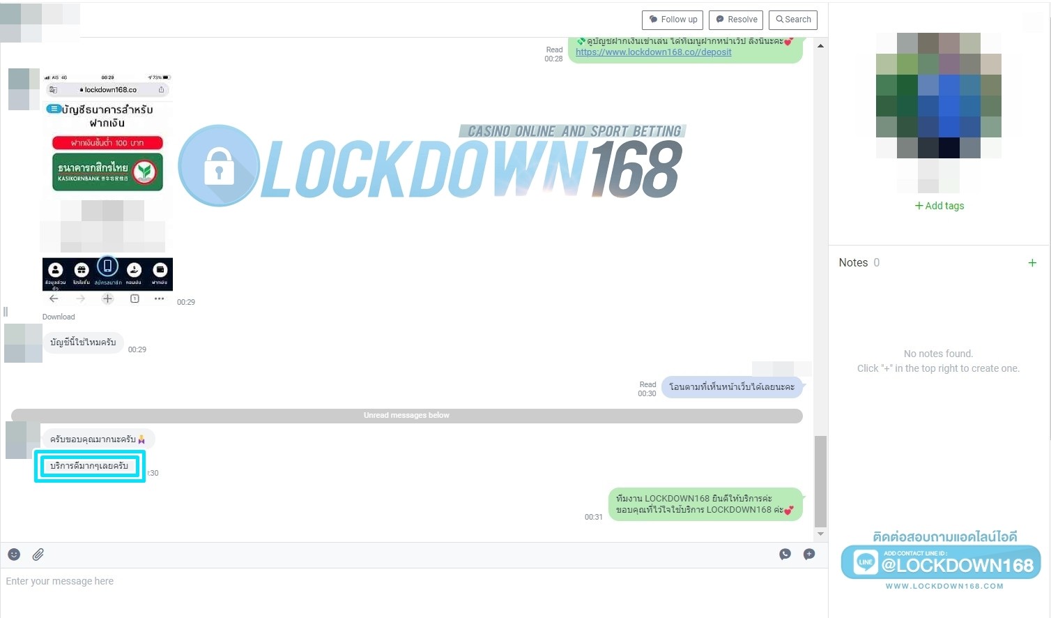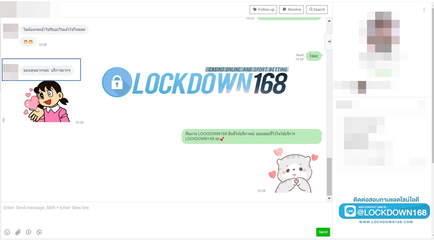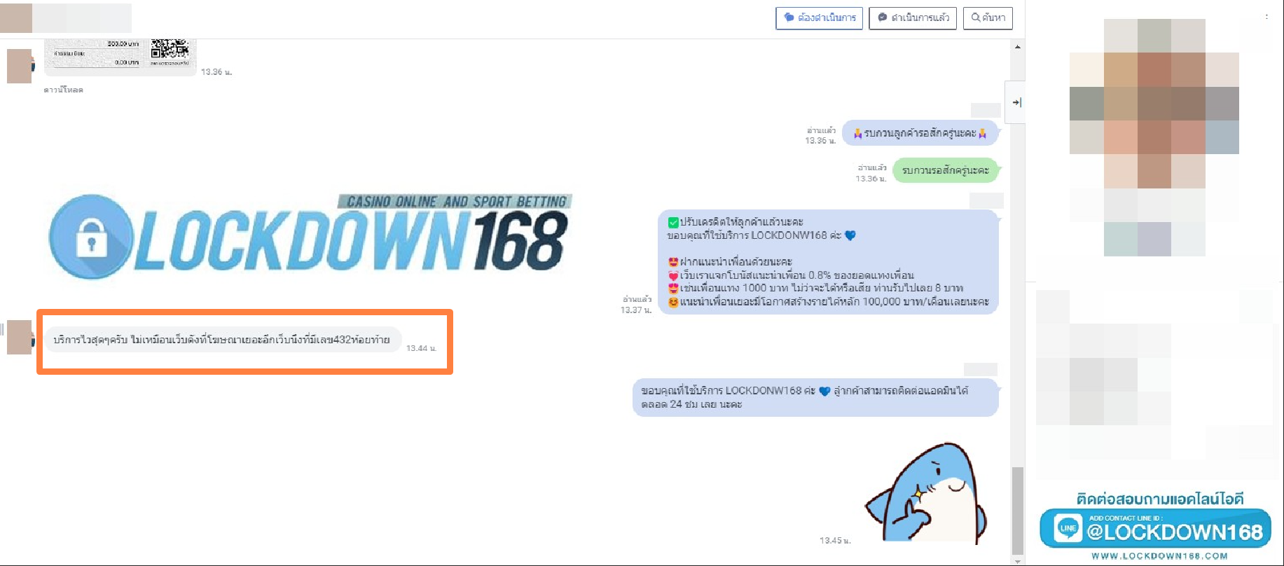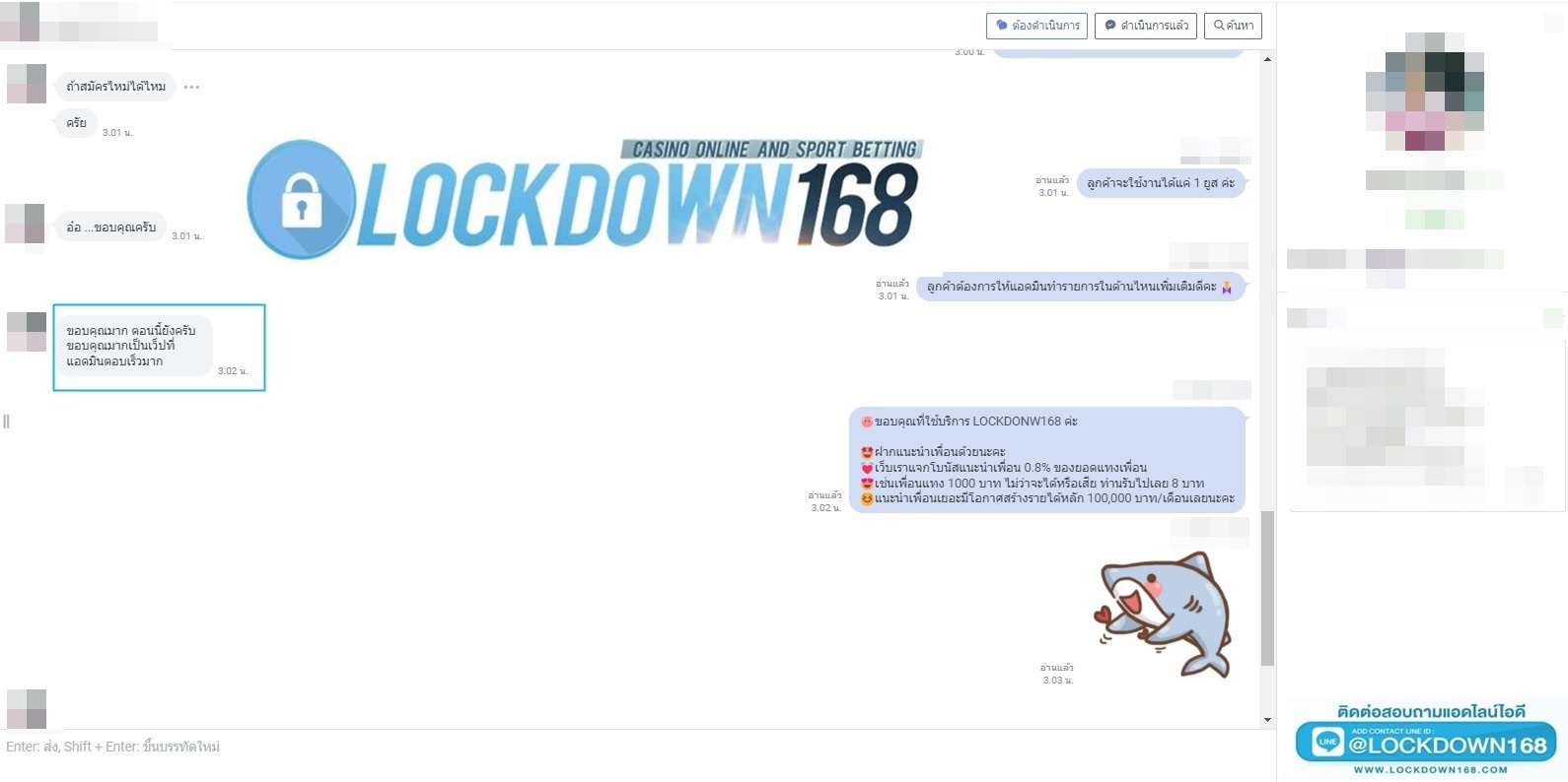 LOCKDOWN168.COM คาสิโนออนไลน์น้องใหม่ที่มาแรงที่สุดในตอนนี้ ด้วยระบบฝาก-ถอนอัตโนมัติ ที่ใช้เทคโนโลยีการจับยอดแบบใหม่ จับยอดฝากได้ภายใน 10 วินาที สามารถเล่นได้ทันทีหลังทำการโอนเงิน และระบบถอนเงินที่สามารถถอนเงินที่หน้าเว็ปได้ด้วยตัวท่านเอง โดยไม่ต้องแจ้งแอดมินและยอดเงินจะเข้าหลังจากทำการถอนภายใน 5 นาที เว็ปของเราคำนึงถึงความสะดวกสบายของลูกค้าเป็นหลัก หากลูกค้าพบปัญหาใดๆก็จะมีเจ้าหน้าที่แอดมินค่อยดูแลอำนวยความสะดวกให้คุณลูกค้าตลอด 24 ชั่วโมง