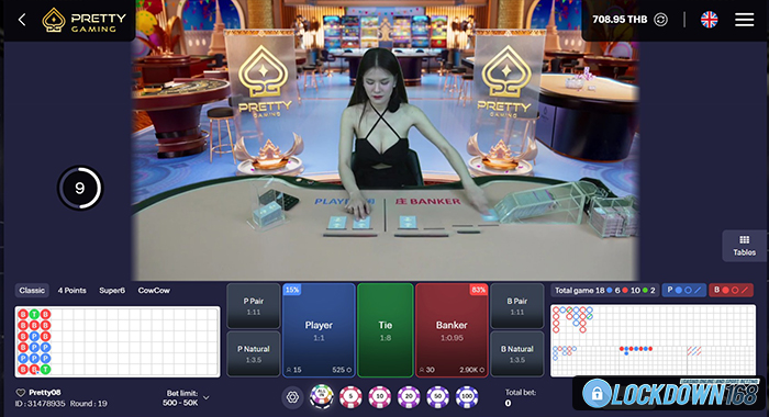 Pretty Gaming มีบาคาร่าเป็นเกมหลักเช่นเคย แต่สิ่งที่เพิ่มมาคือการตกแต่งโต๊ะที่ดูสบายตา หน้าจอเล่นใหญ่ เห็นไพ่ชัด ดีลเลอร์เป็นกันเองมาก